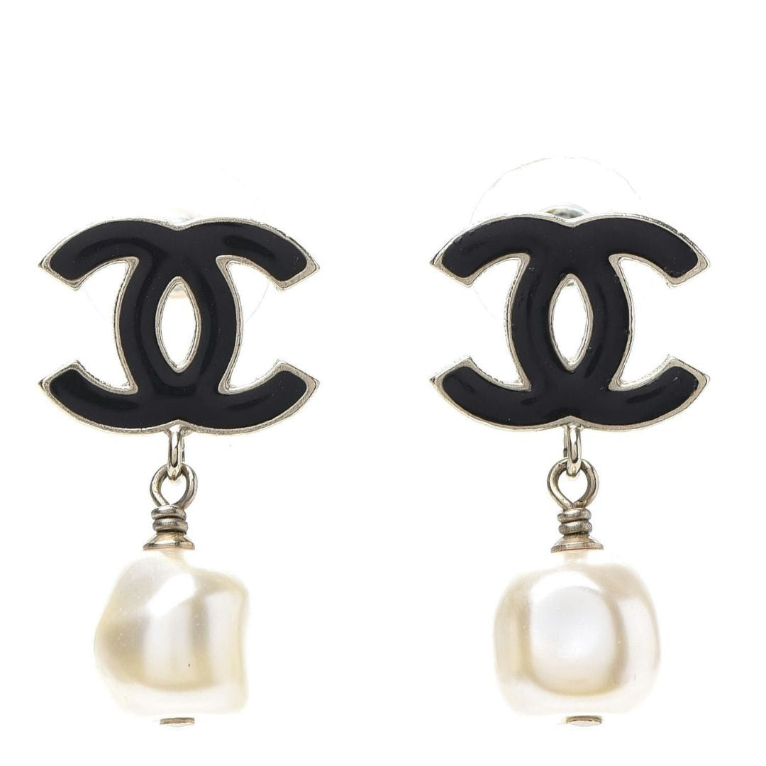 Chanel Pearl Enamel CC Drop Earrings - Black