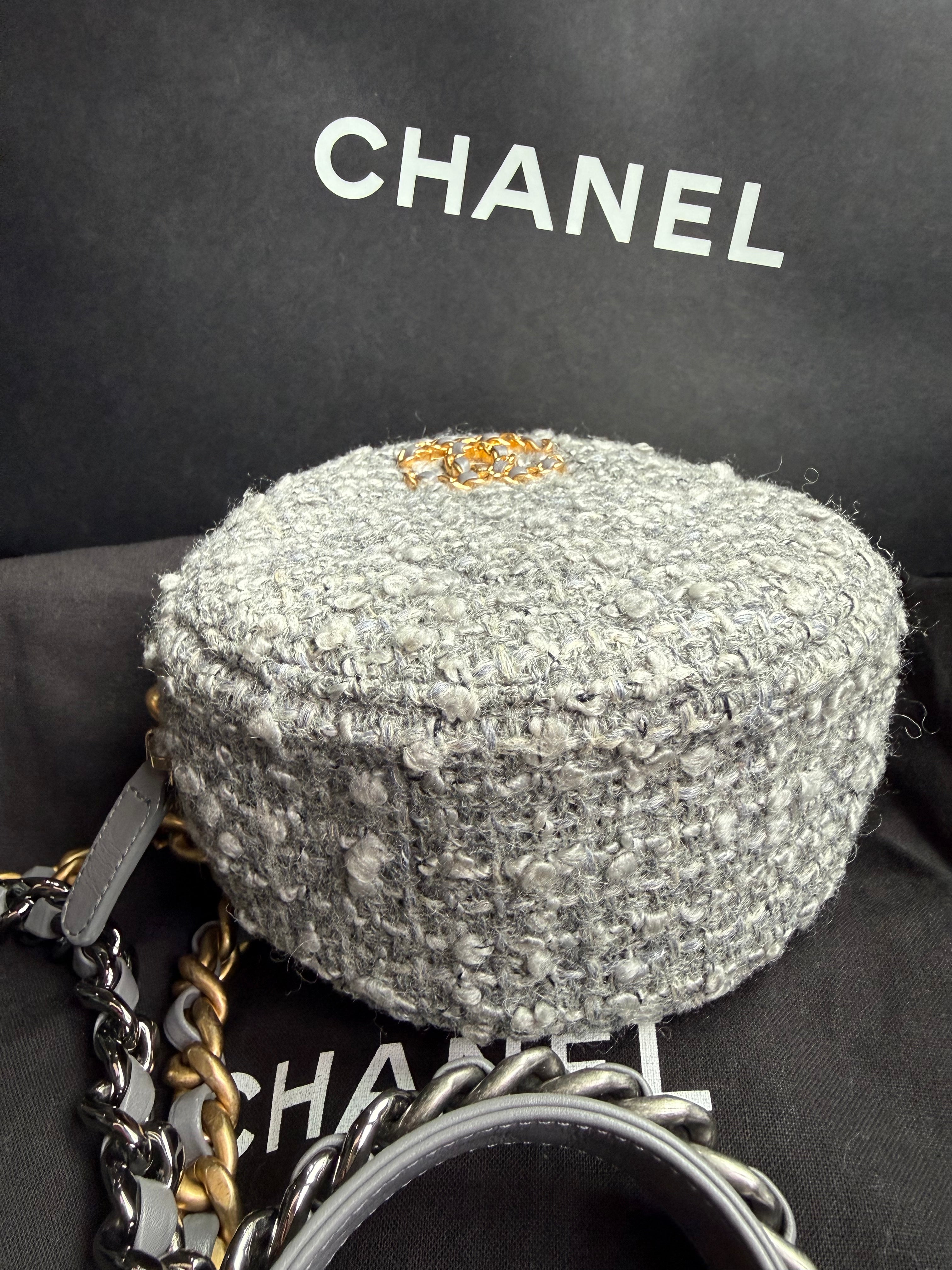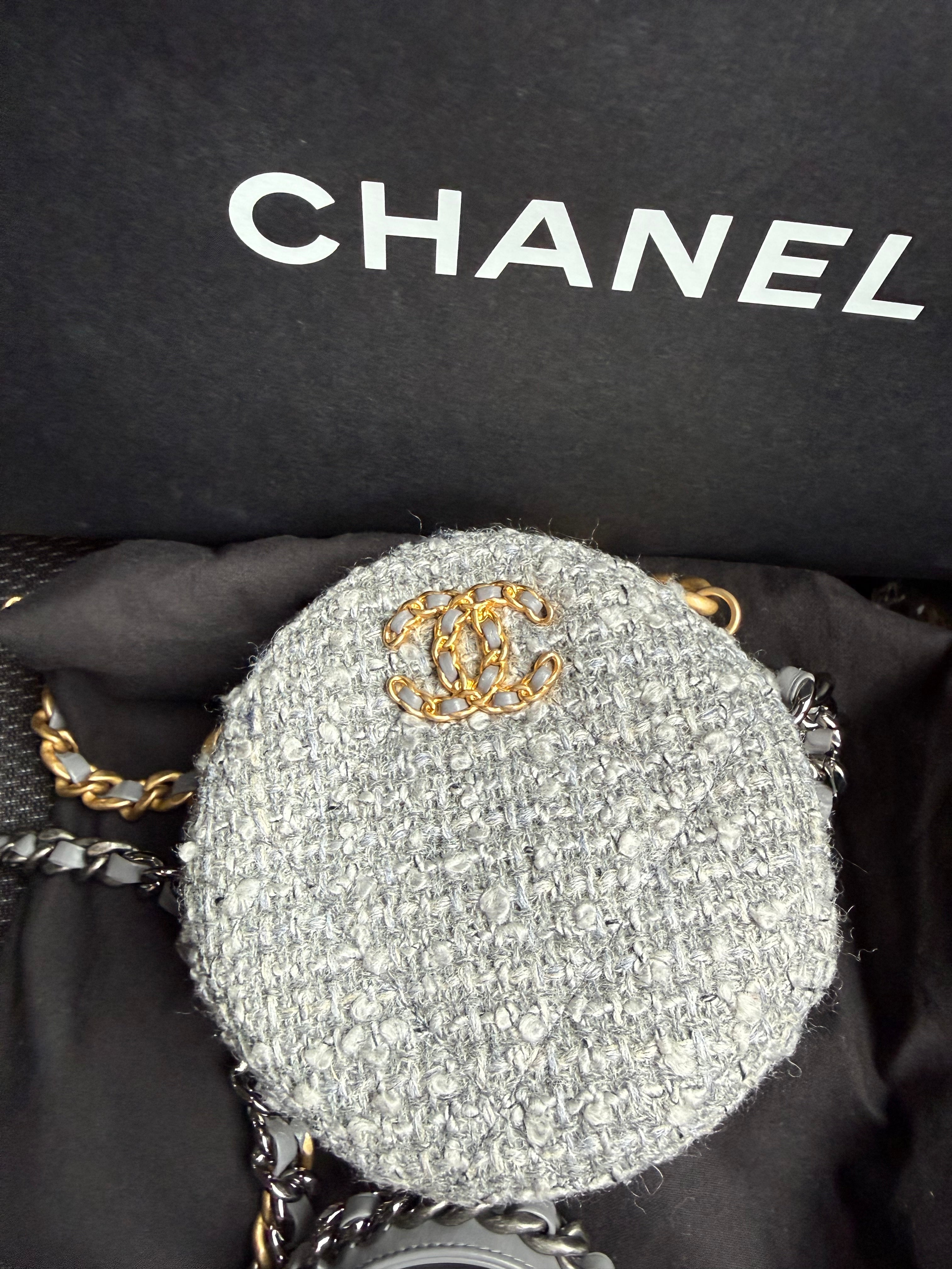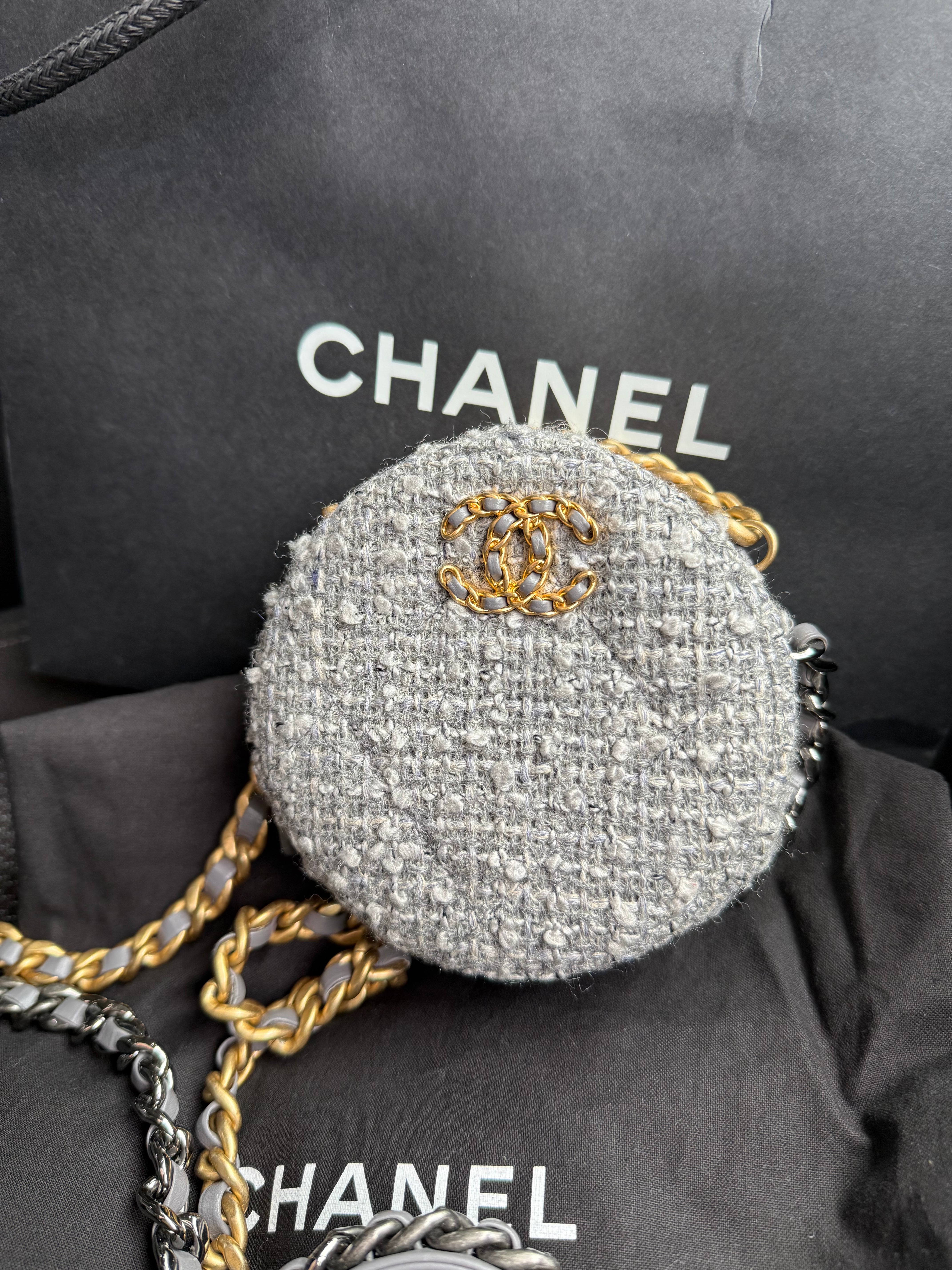 CHANEL 19 tweed round clutch