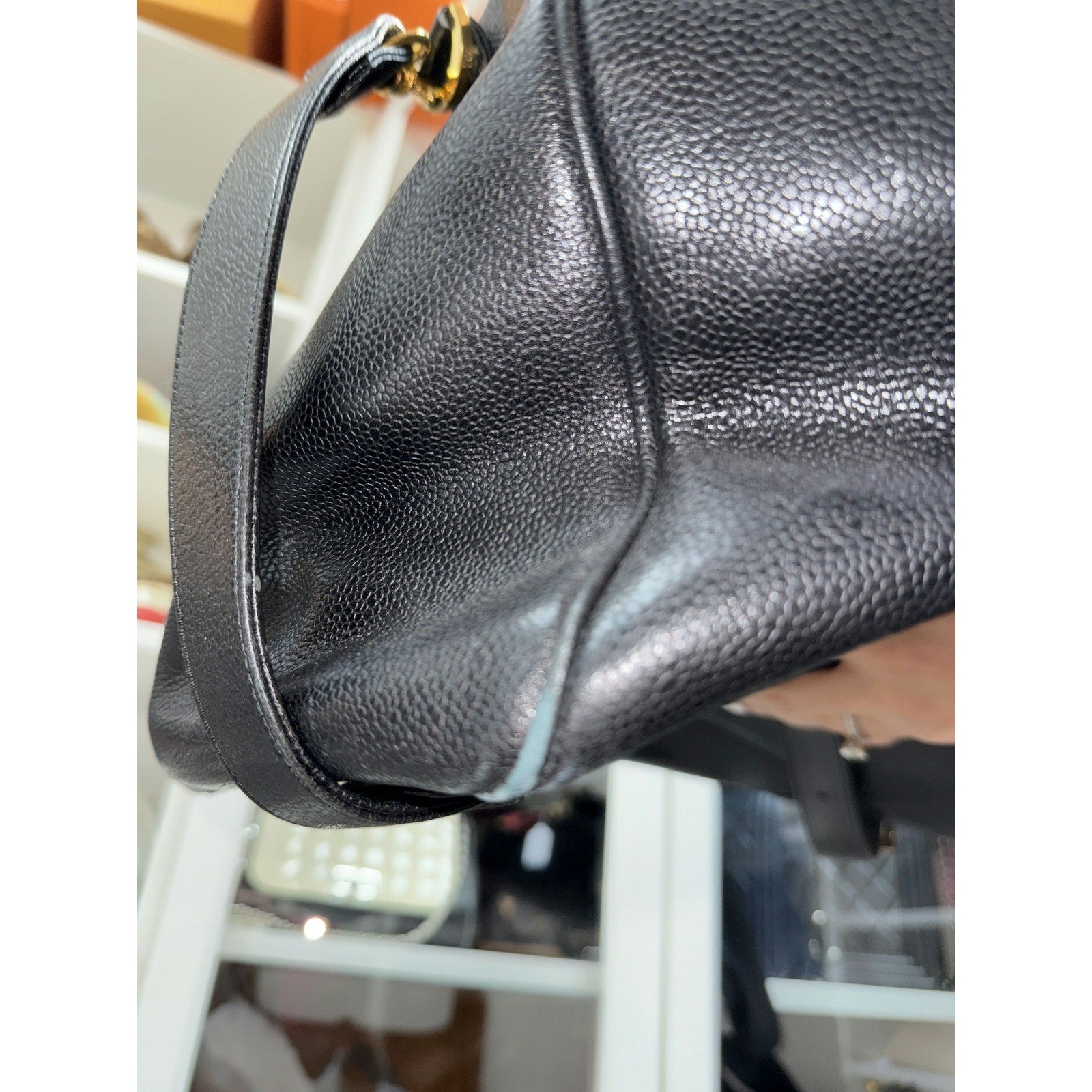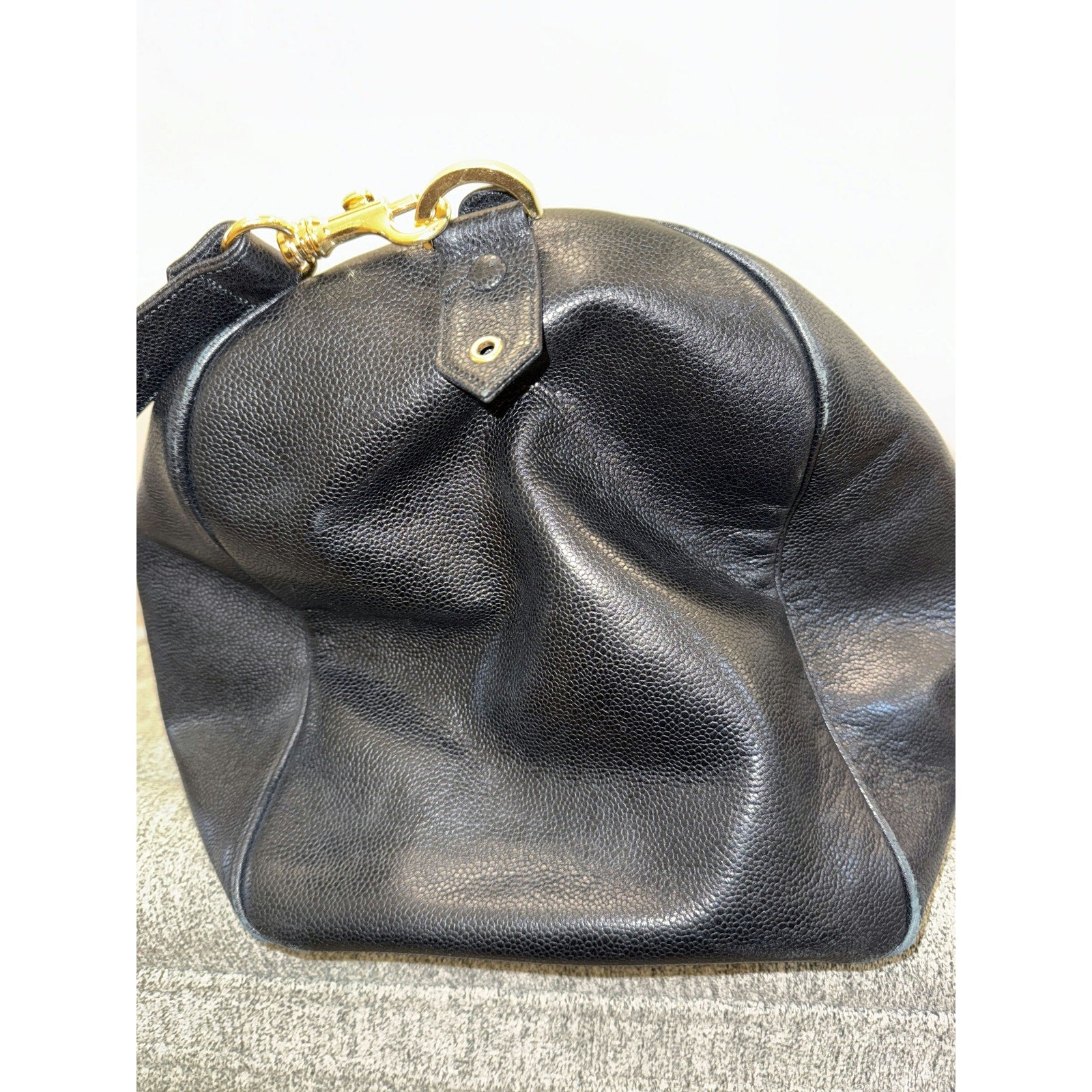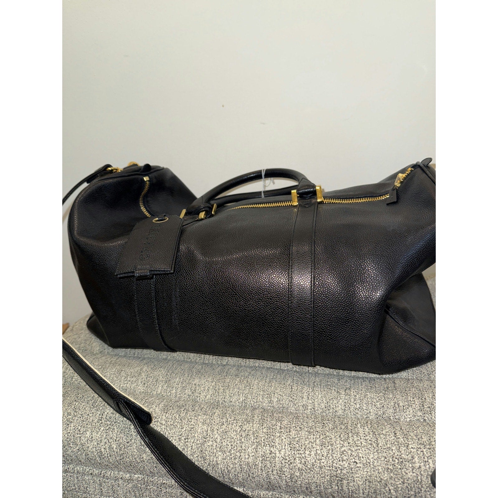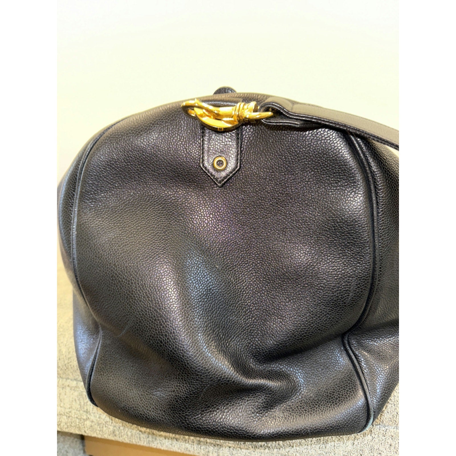This luxurious Chanel duffel bag is crafted from high-quality black leather, featuring the iconic Chanel logo and gold-tone hardware. Ideal for travel or daily use, offering ample space and timeless elegance.