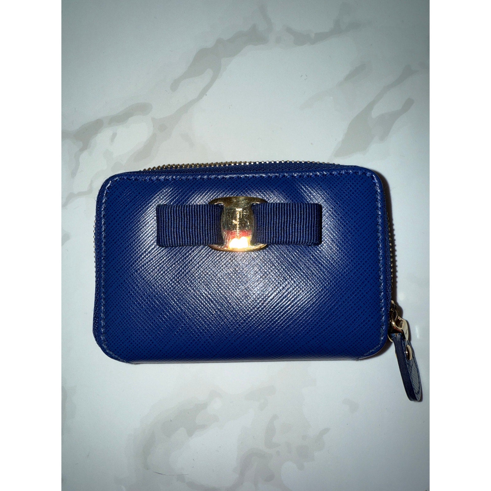 Features: Iconic Ferragamo bow detail, zip-around closure