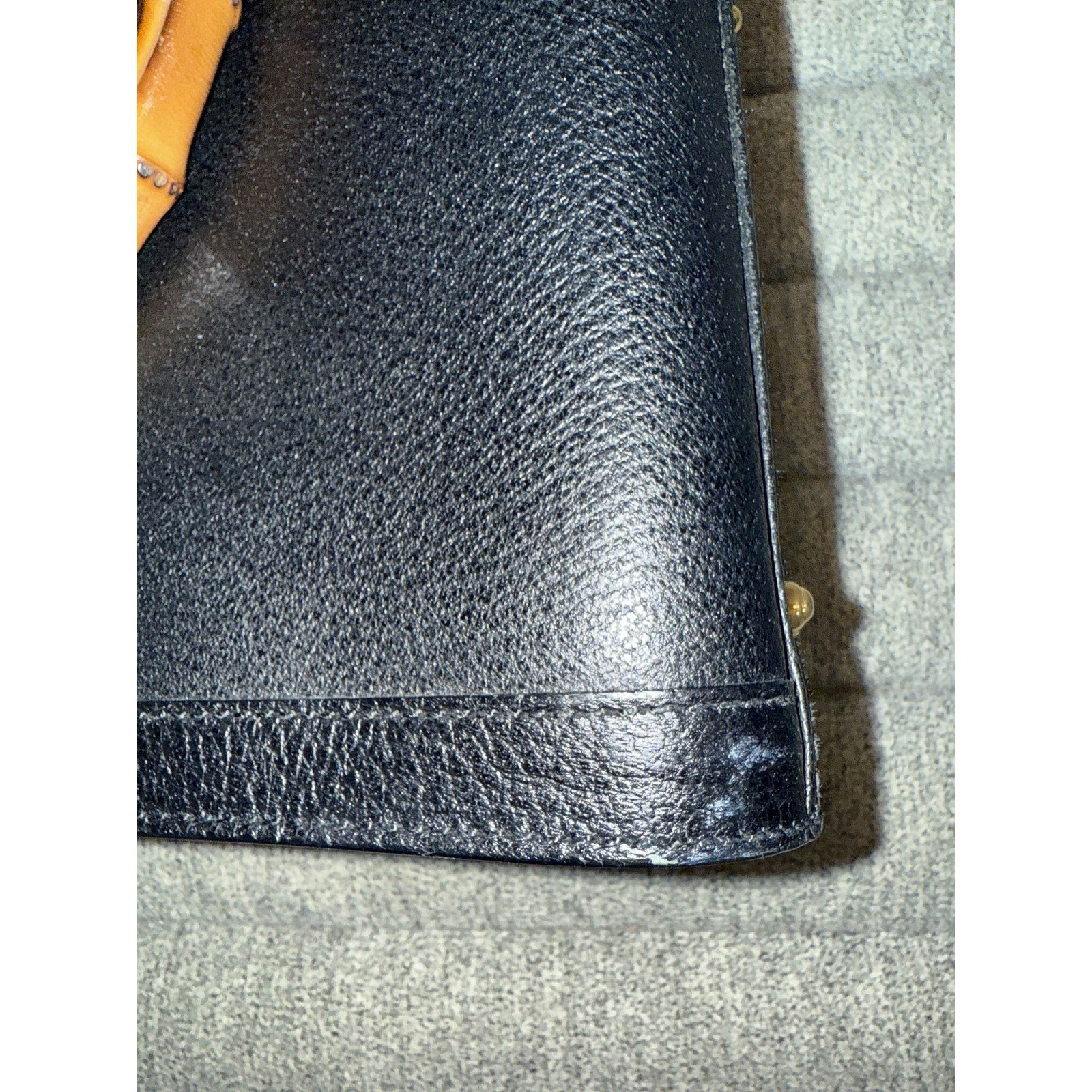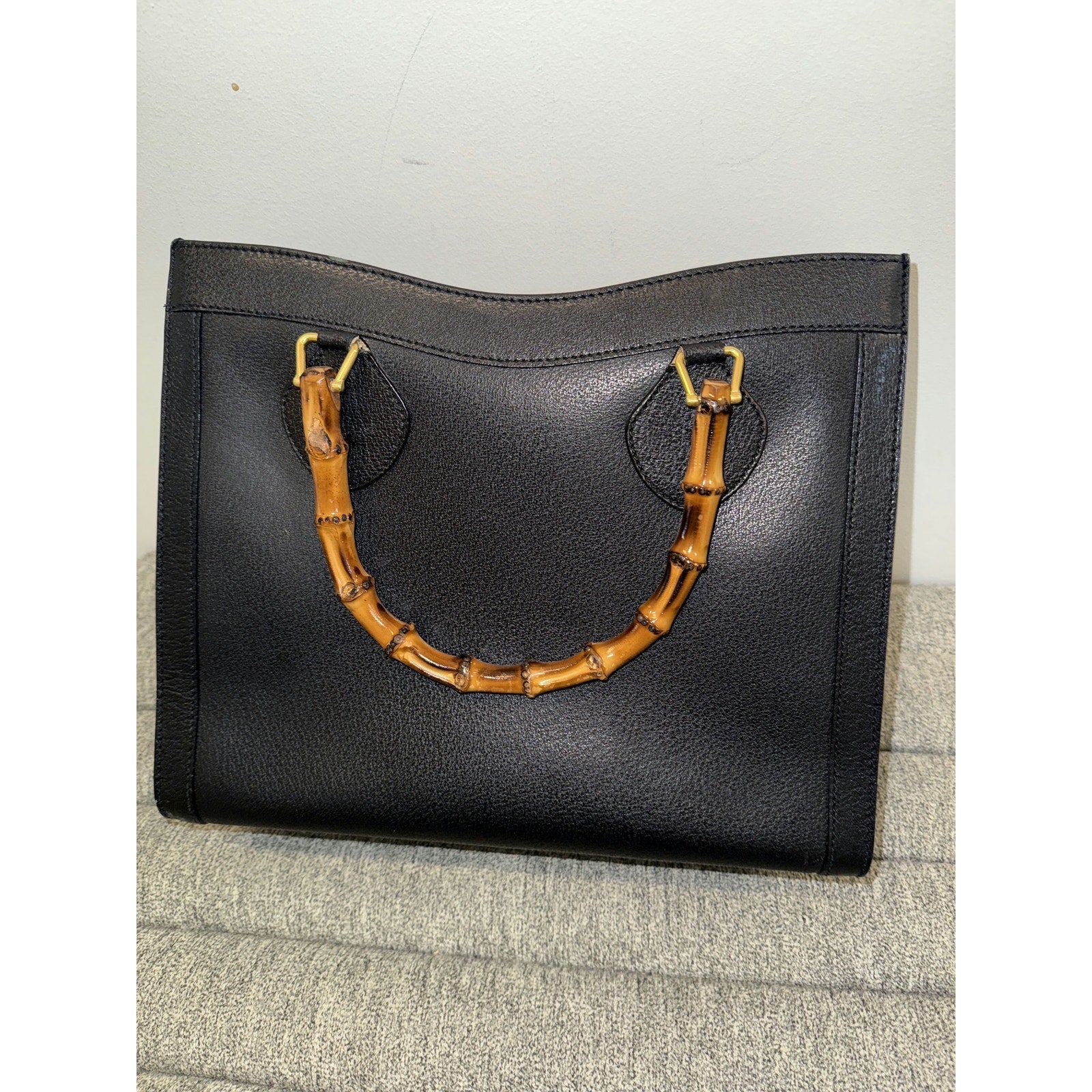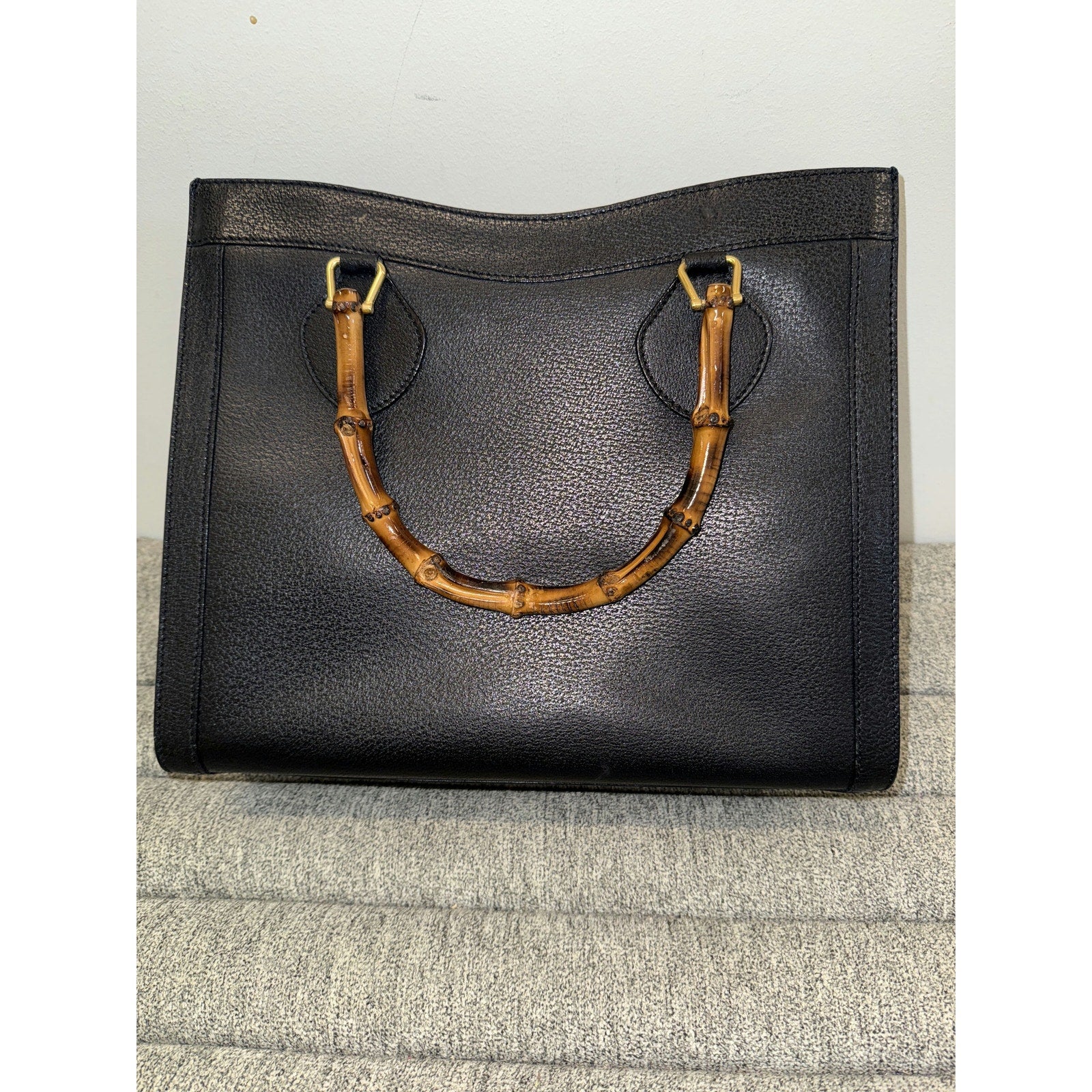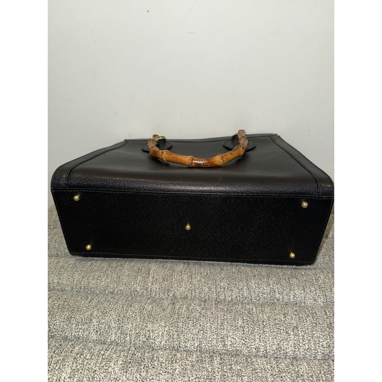 This vintage Gucci bag features the iconic bamboo top handles, adding a unique and timeless touch to its elegant black leather design. Perfect for those who appreciate classic fashion with a distinctive flair.