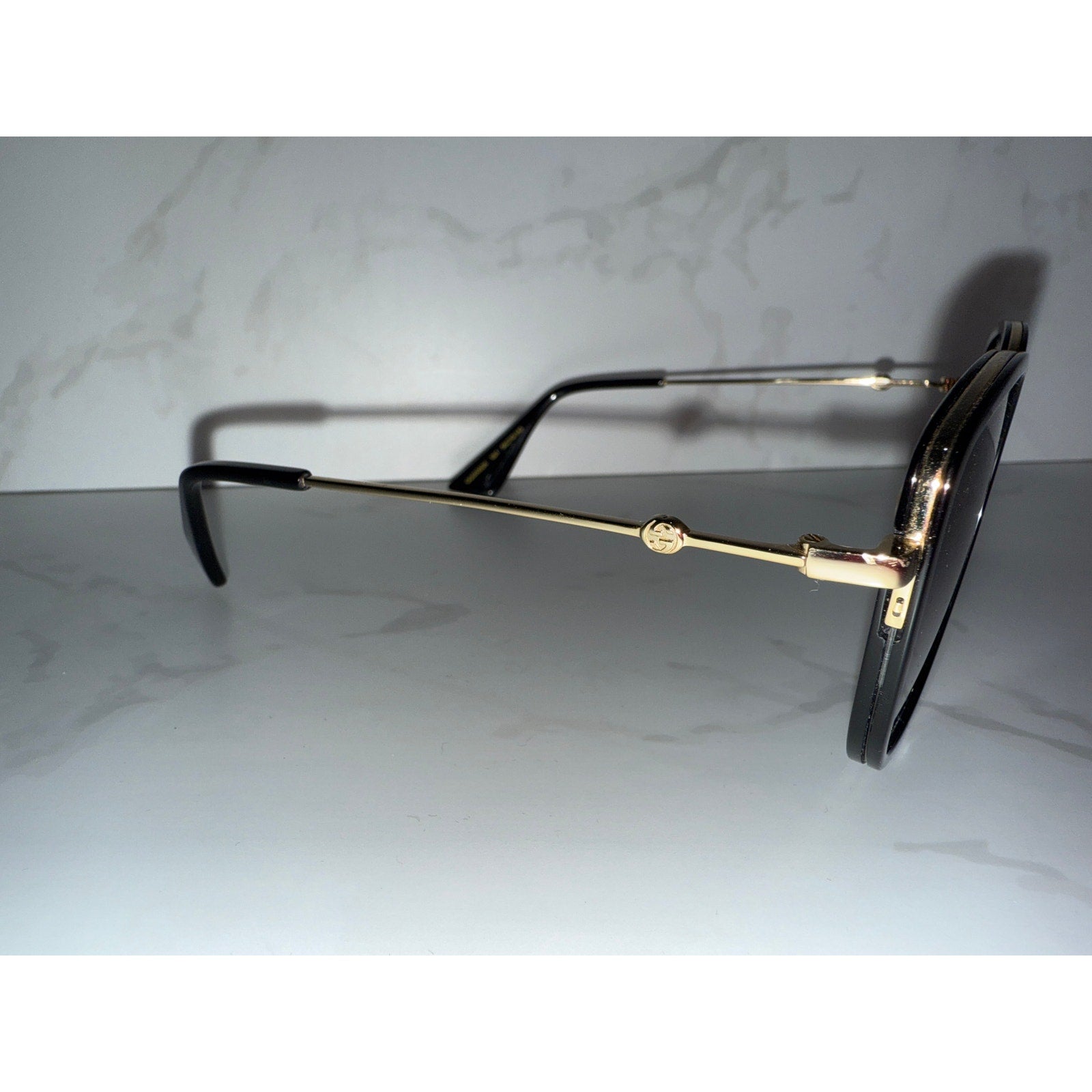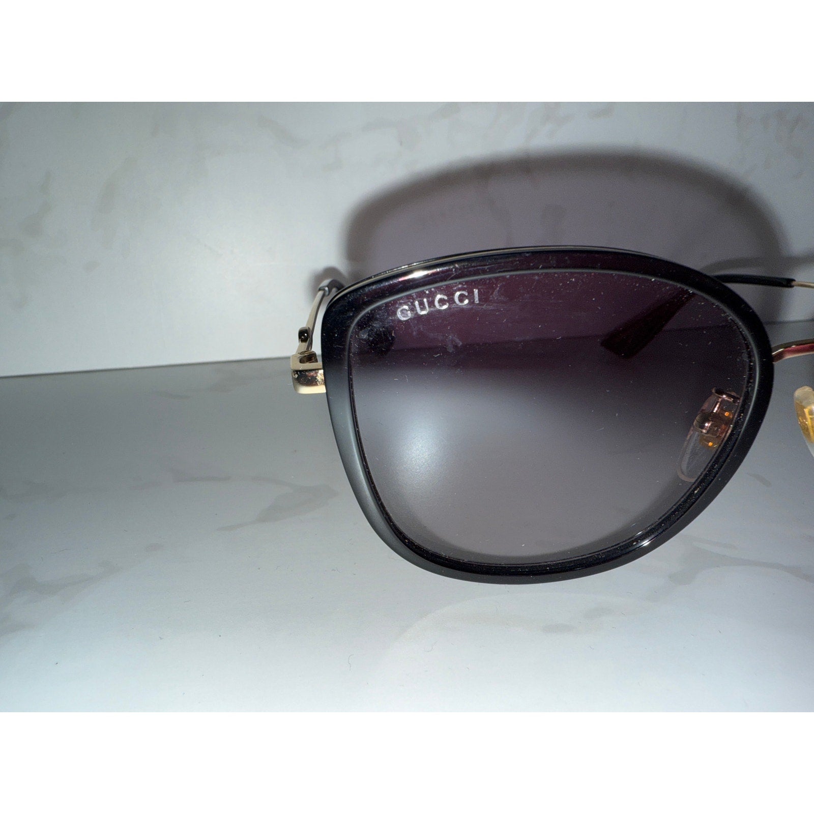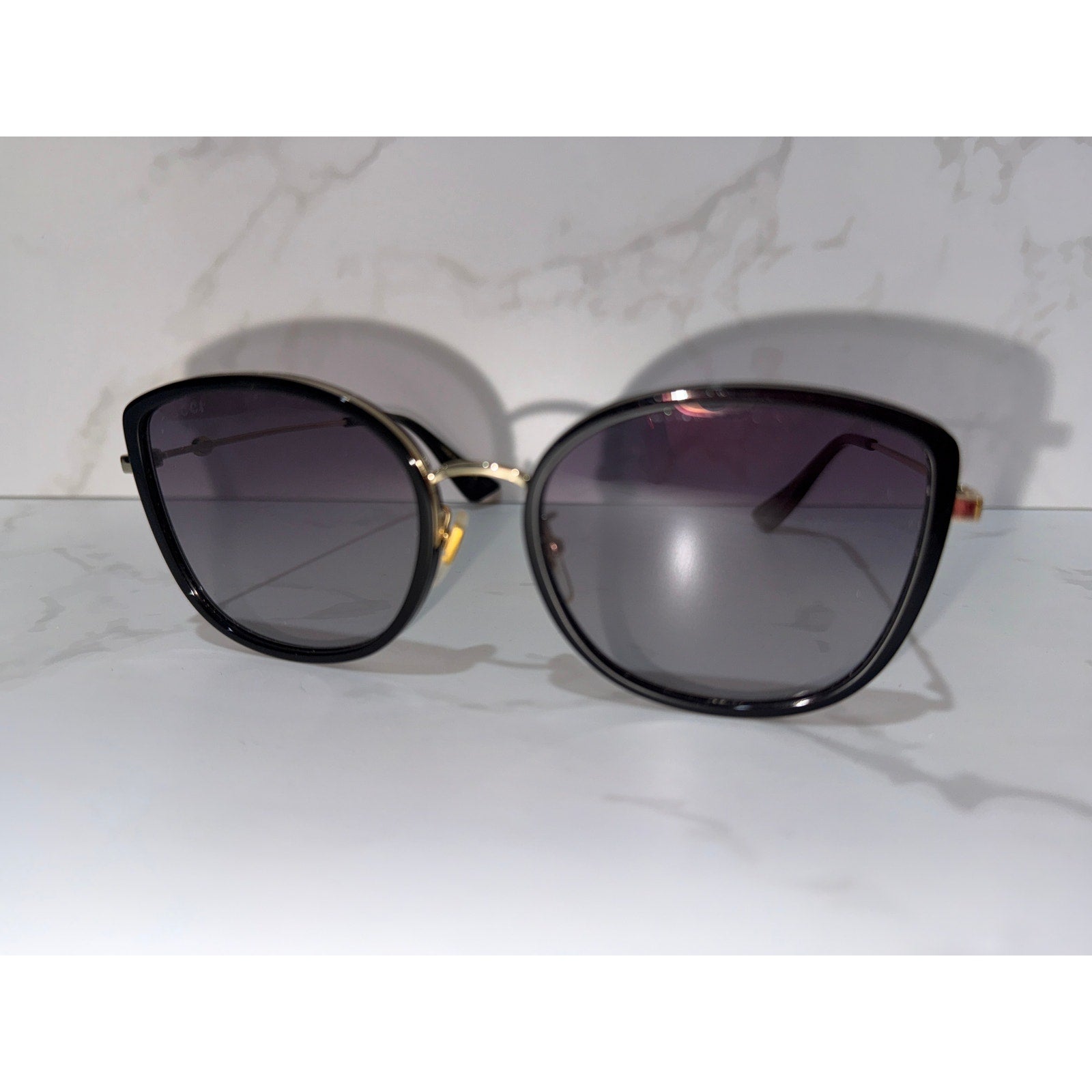 Gucci Cat-Eye Sunglasses in Black with Gold Trim - Vintage