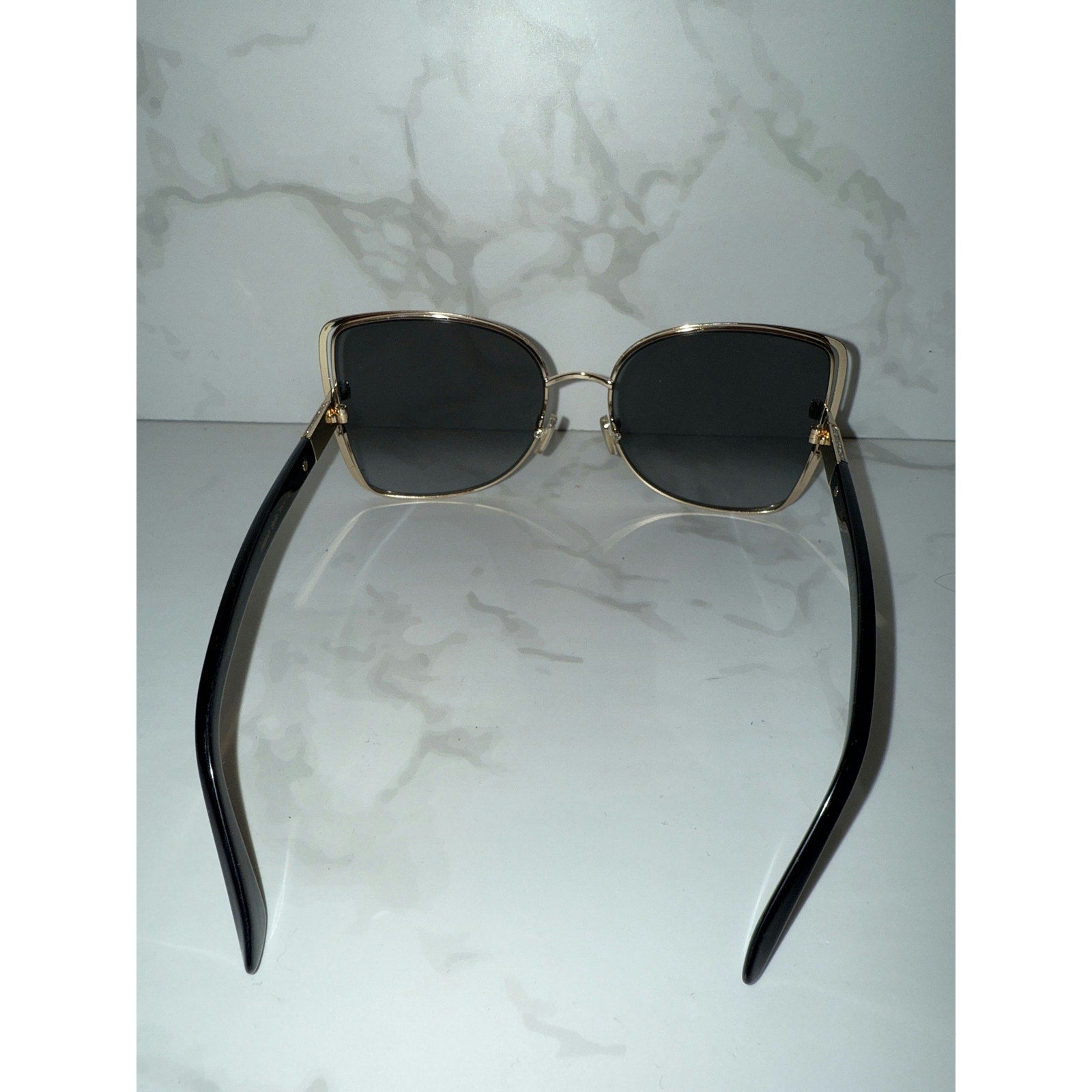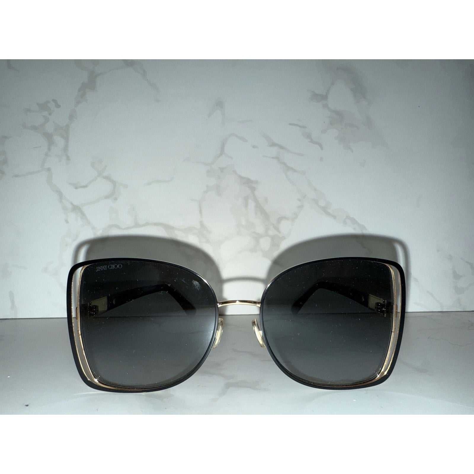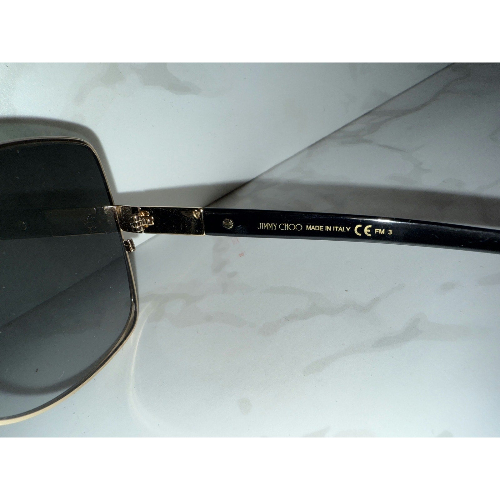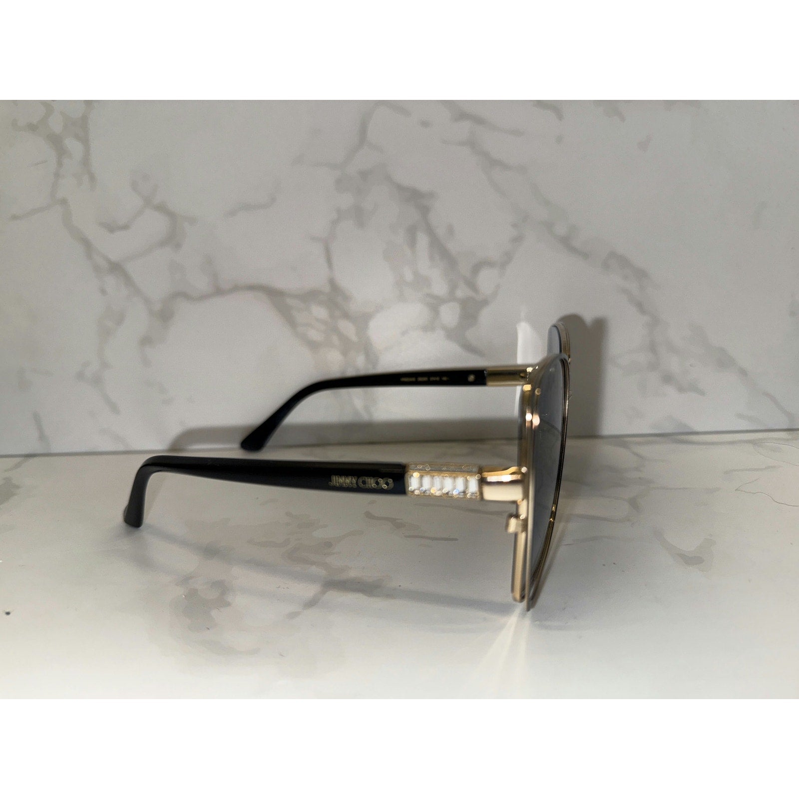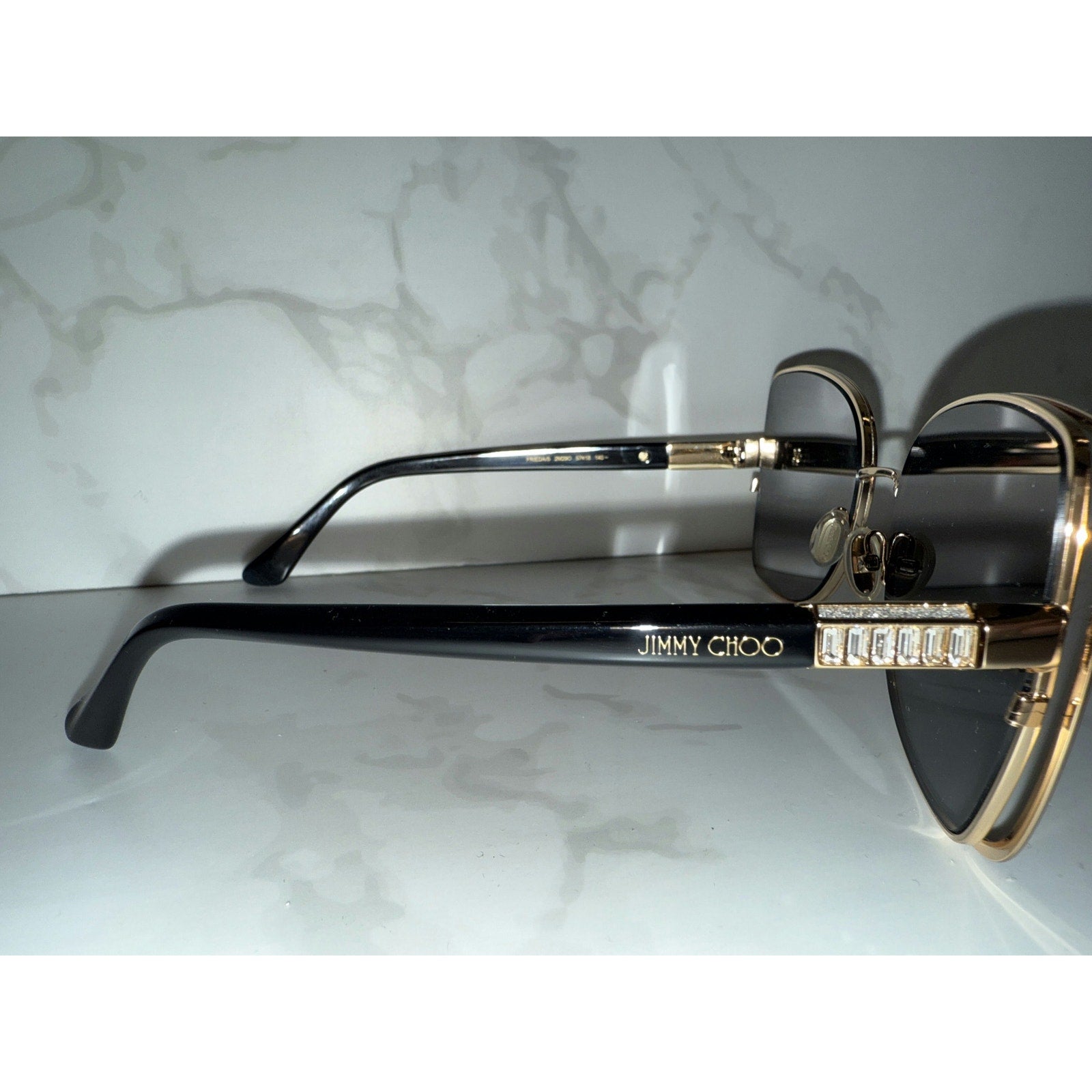 These Jimmy Choo sunglasses feature a sleek gold frame with black accents, offering a sophisticated and glamorous look. In like-new condition, they are perfect for adding a touch of luxury to your everyday style. Complete with a case, these sunglasses are a must-have accessory for any fashion enthusiast.