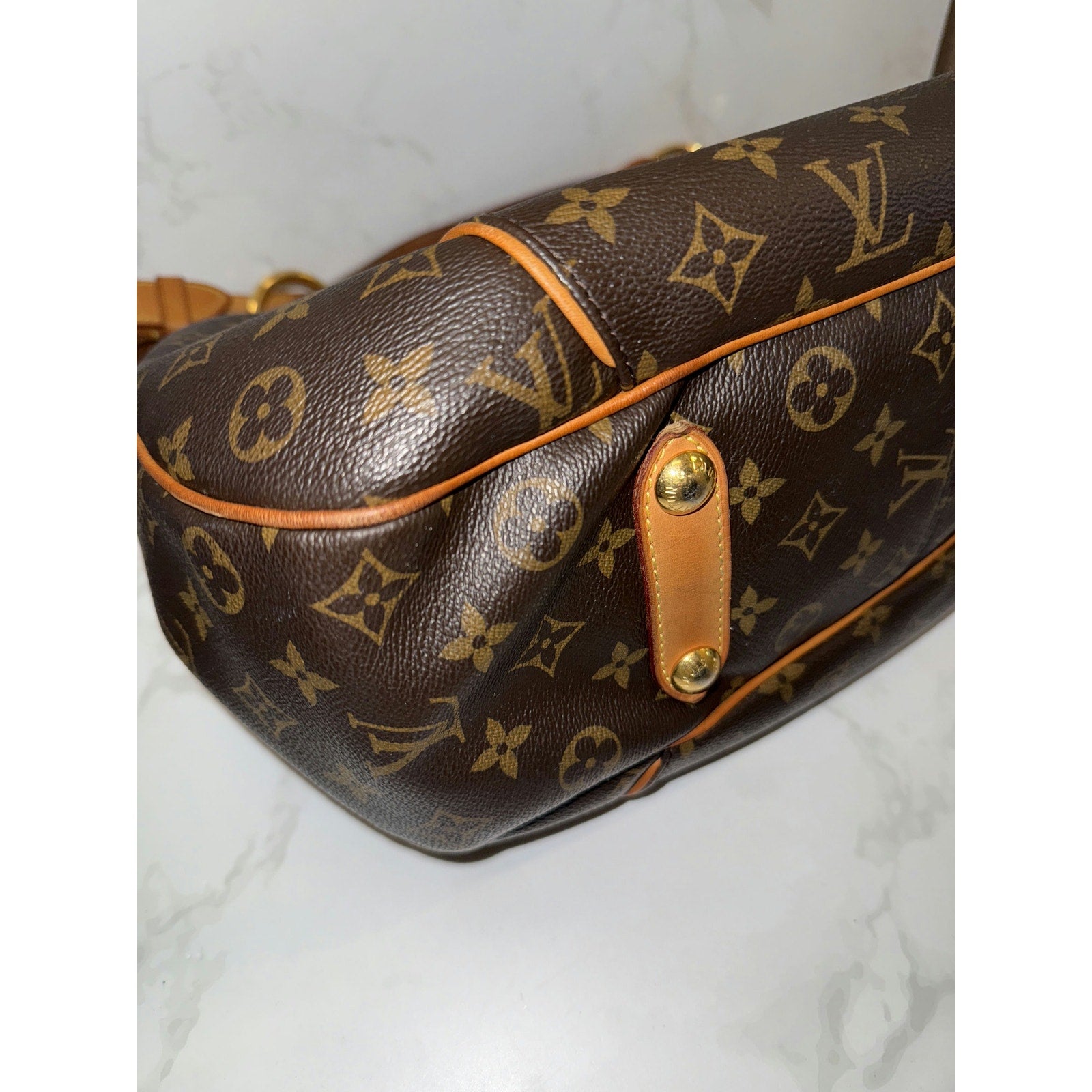 This Louis Vuitton Galliera GM bag is crafted from the classic monogram canvas, featuring elegant gold-tone hardware and a roomy interior perfect for daily use. The bag is in good condition, with some signs of wear that add to its character. Ideal for those seeking a blend of luxury and practicality, this piece is a timeless addition to any collection.