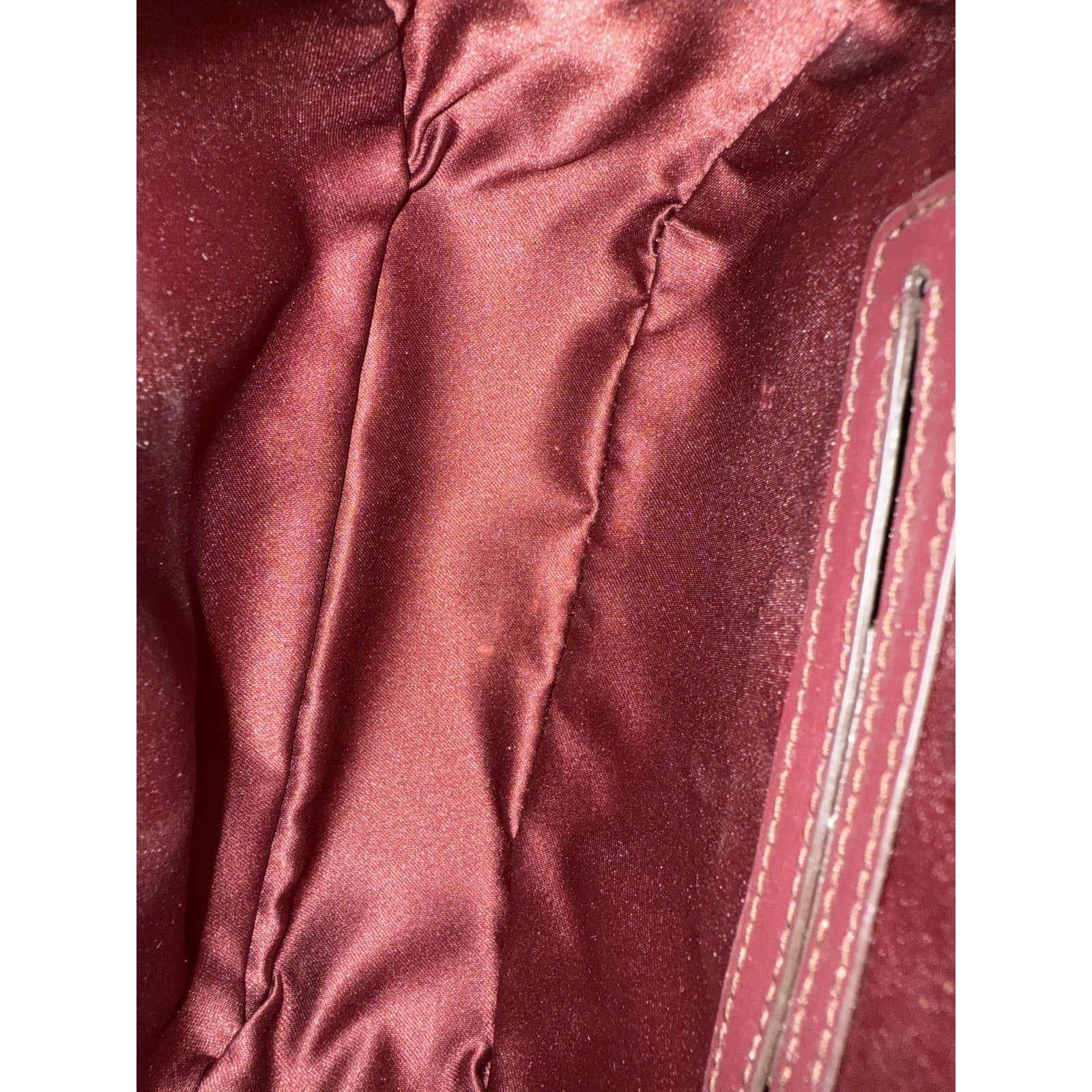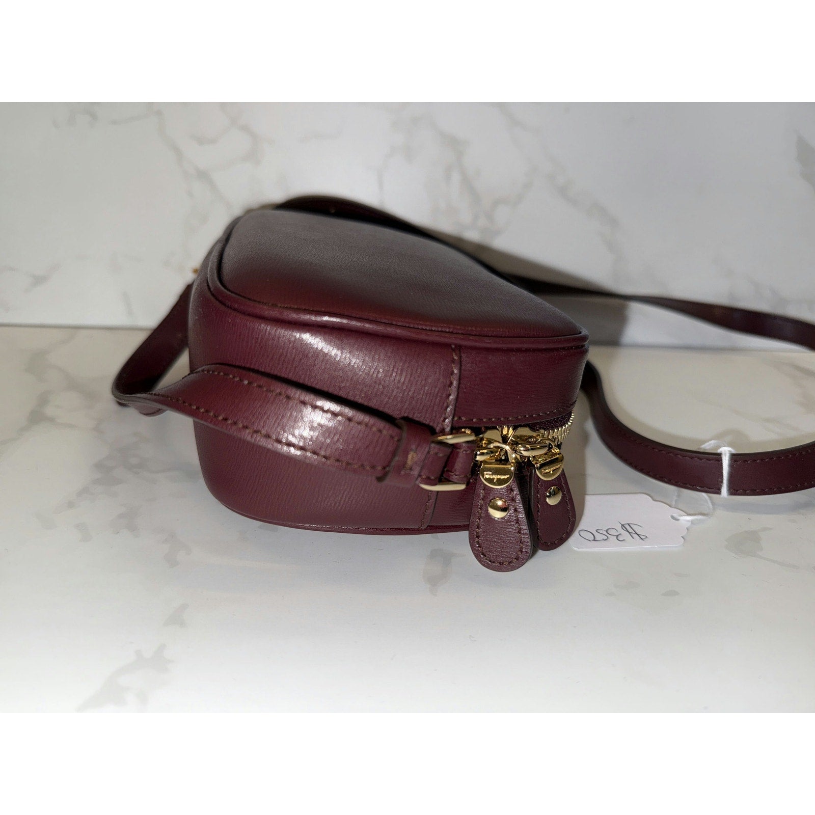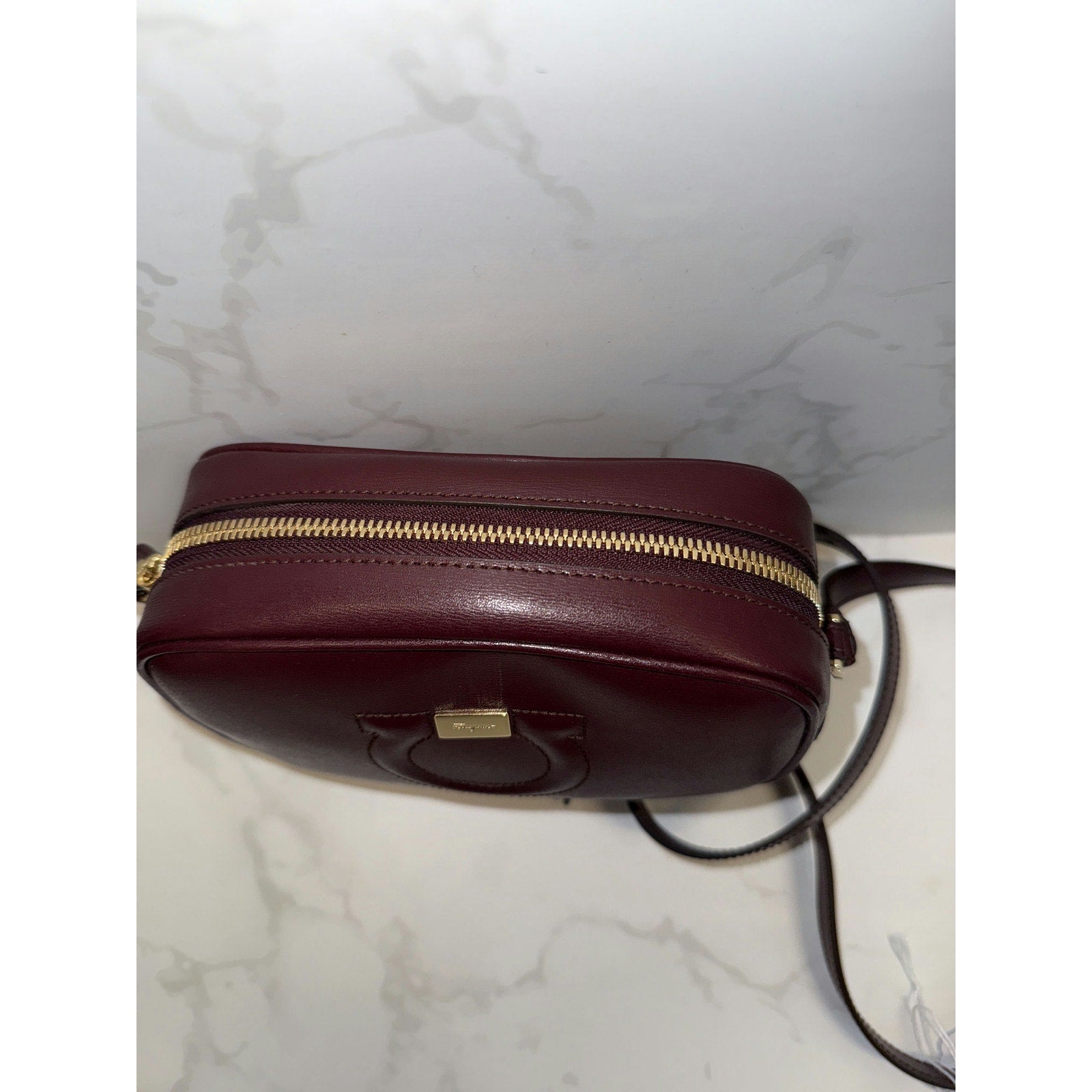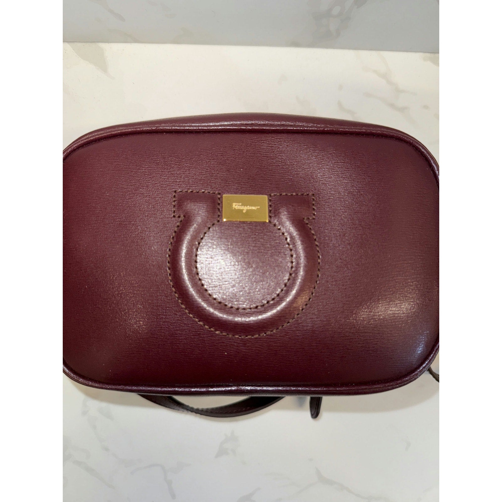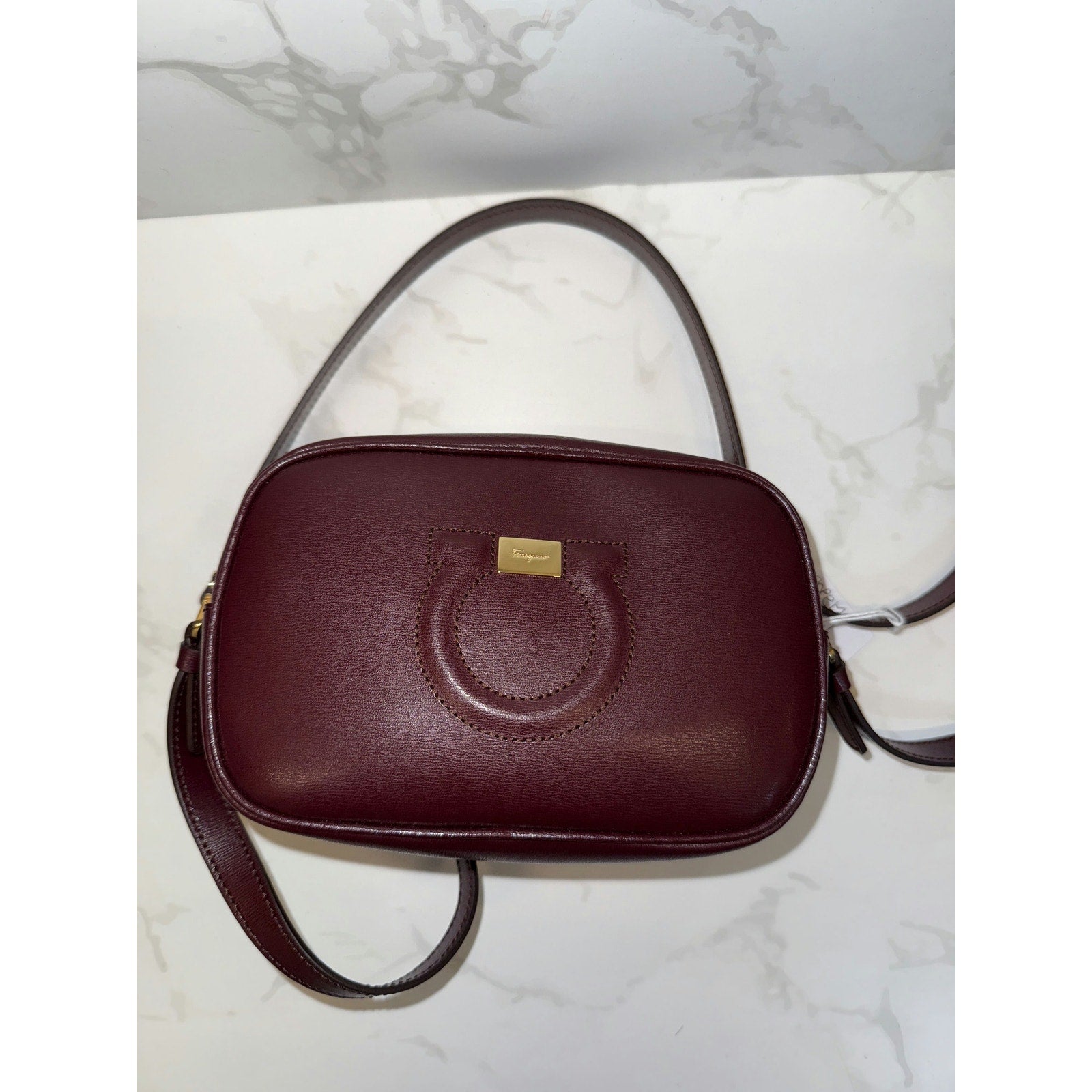 This Salvatore Ferragamo bag features the iconic Gancini emblem and a versatile design that transitions effortlessly from shoulder to crossbody. Crafted from rich burgundy leather, it adds a touch of luxury to any ensemble.