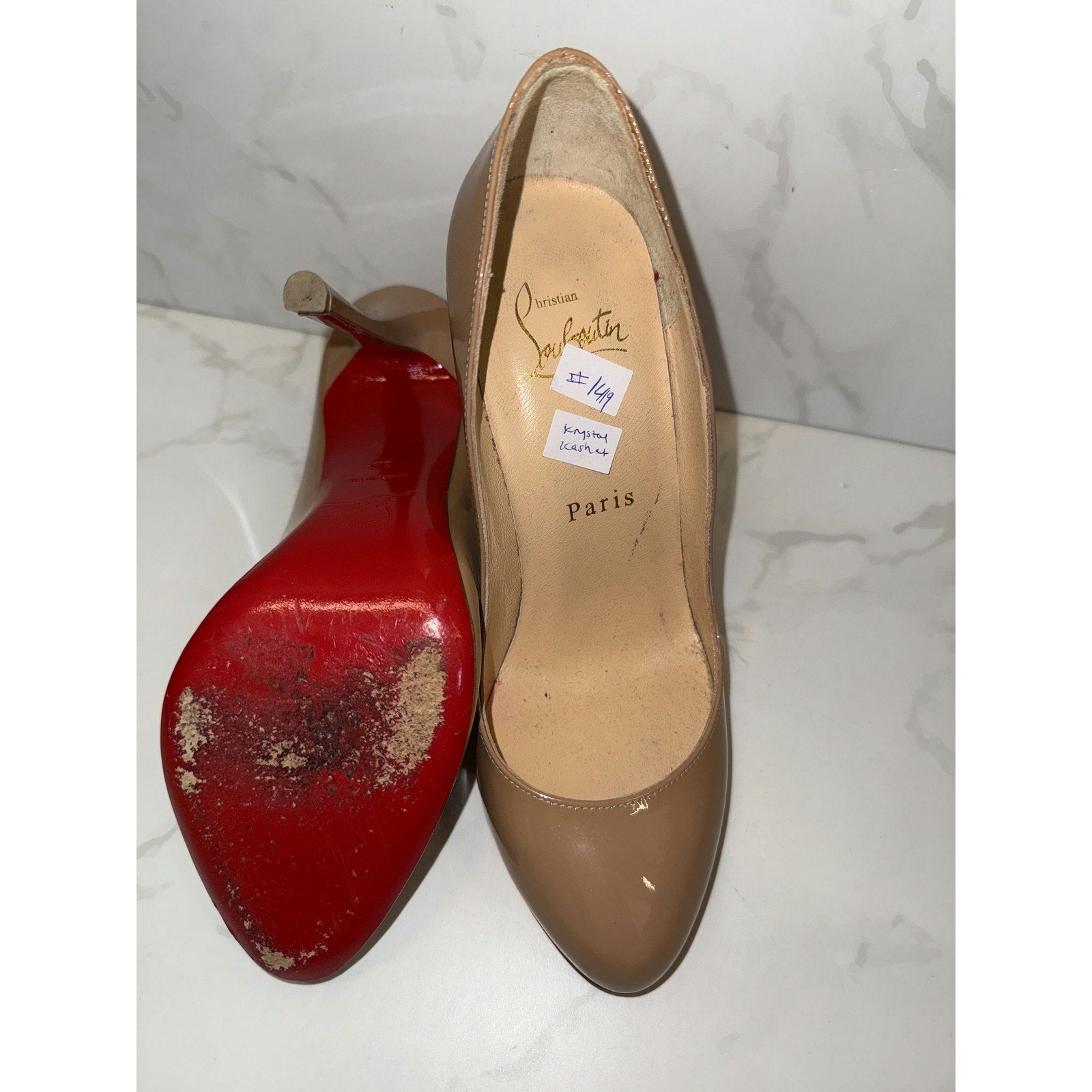 These elegant Christian Louboutin heels feature the signature red soles and a timeless nude patent leather finish. In excellent condition, they add a touch of luxury and sophistication to any outfit. Perfect for both formal and casual occasions, these Louboutins are a staple for any fashion-forward wardrobe. Elevate your style with these iconic heels today!
