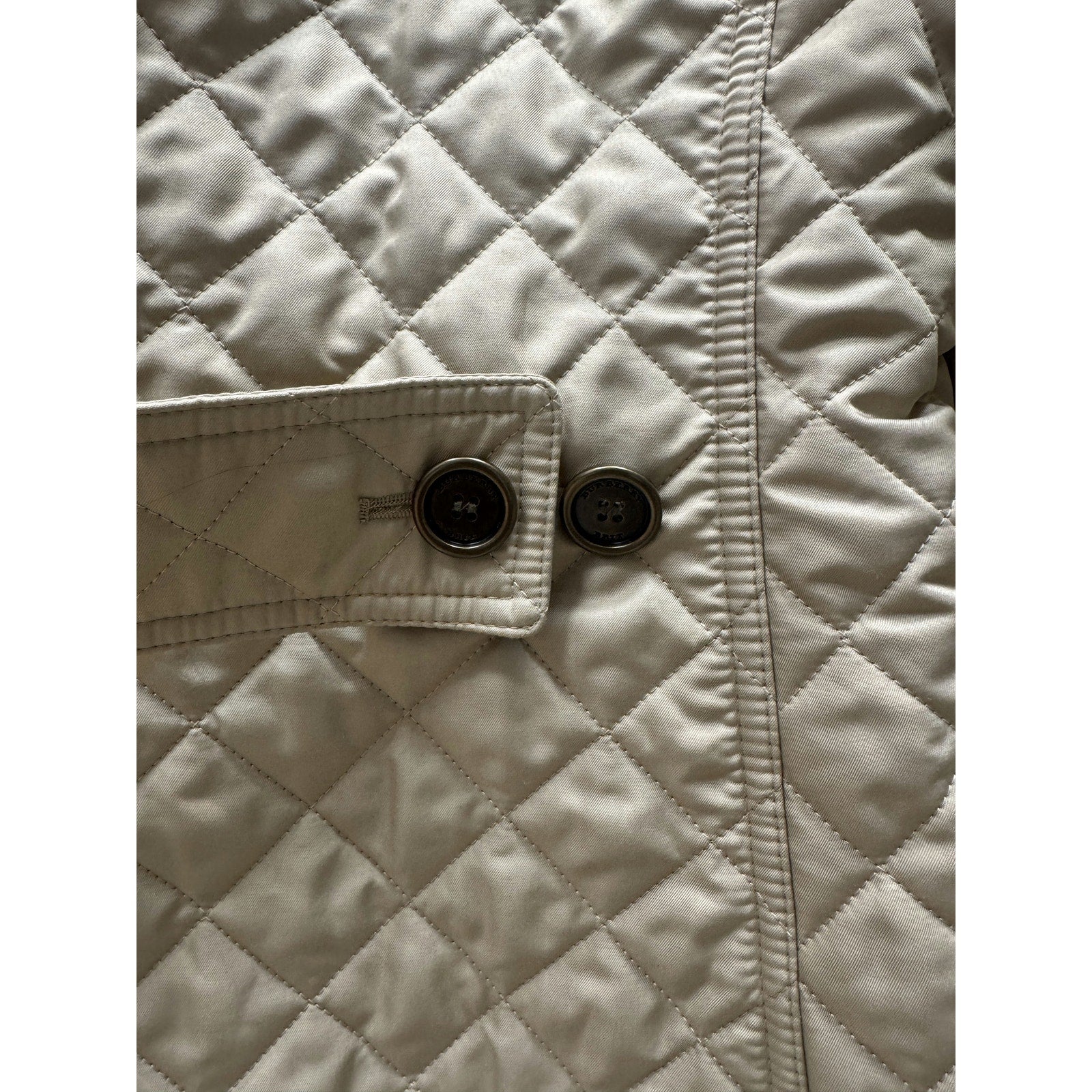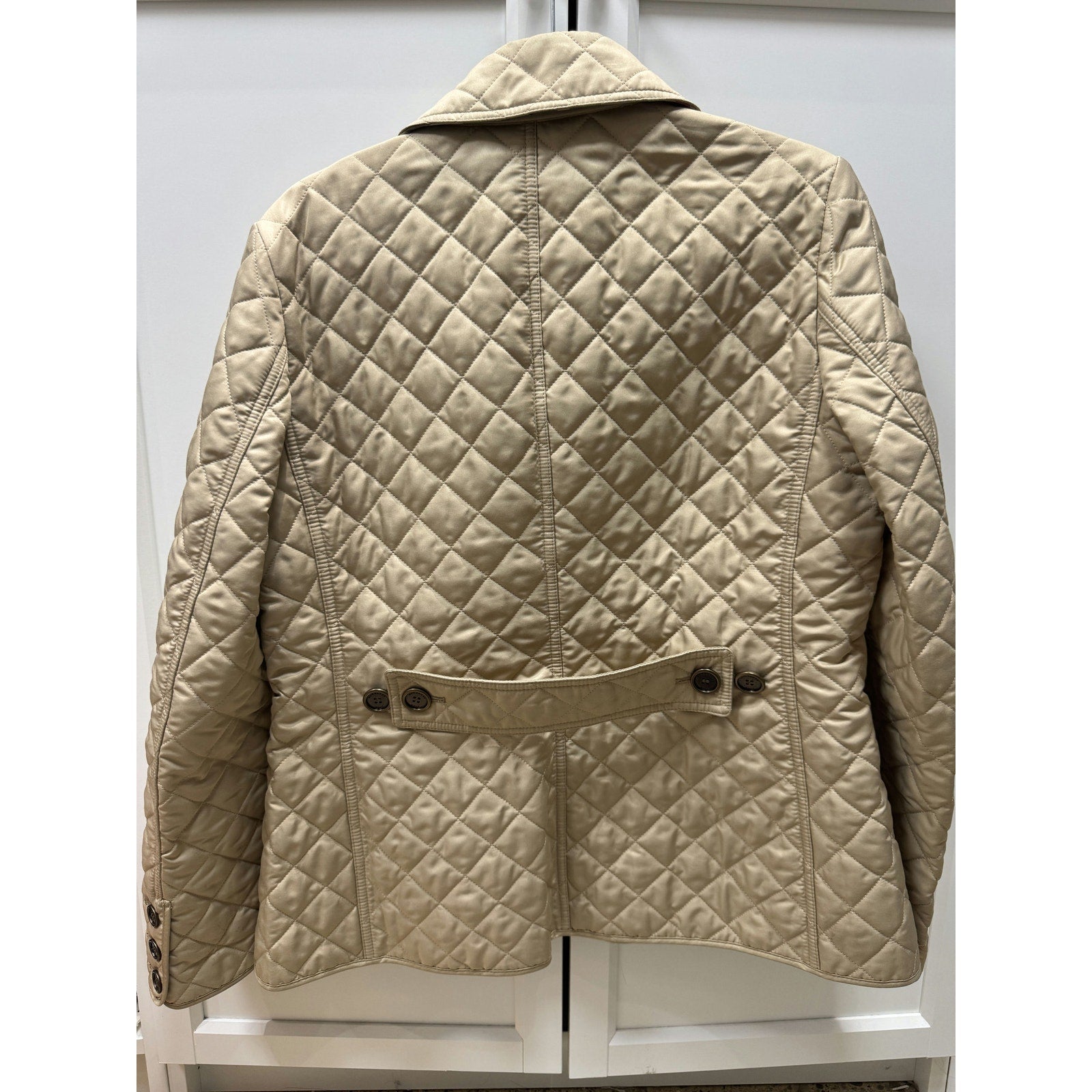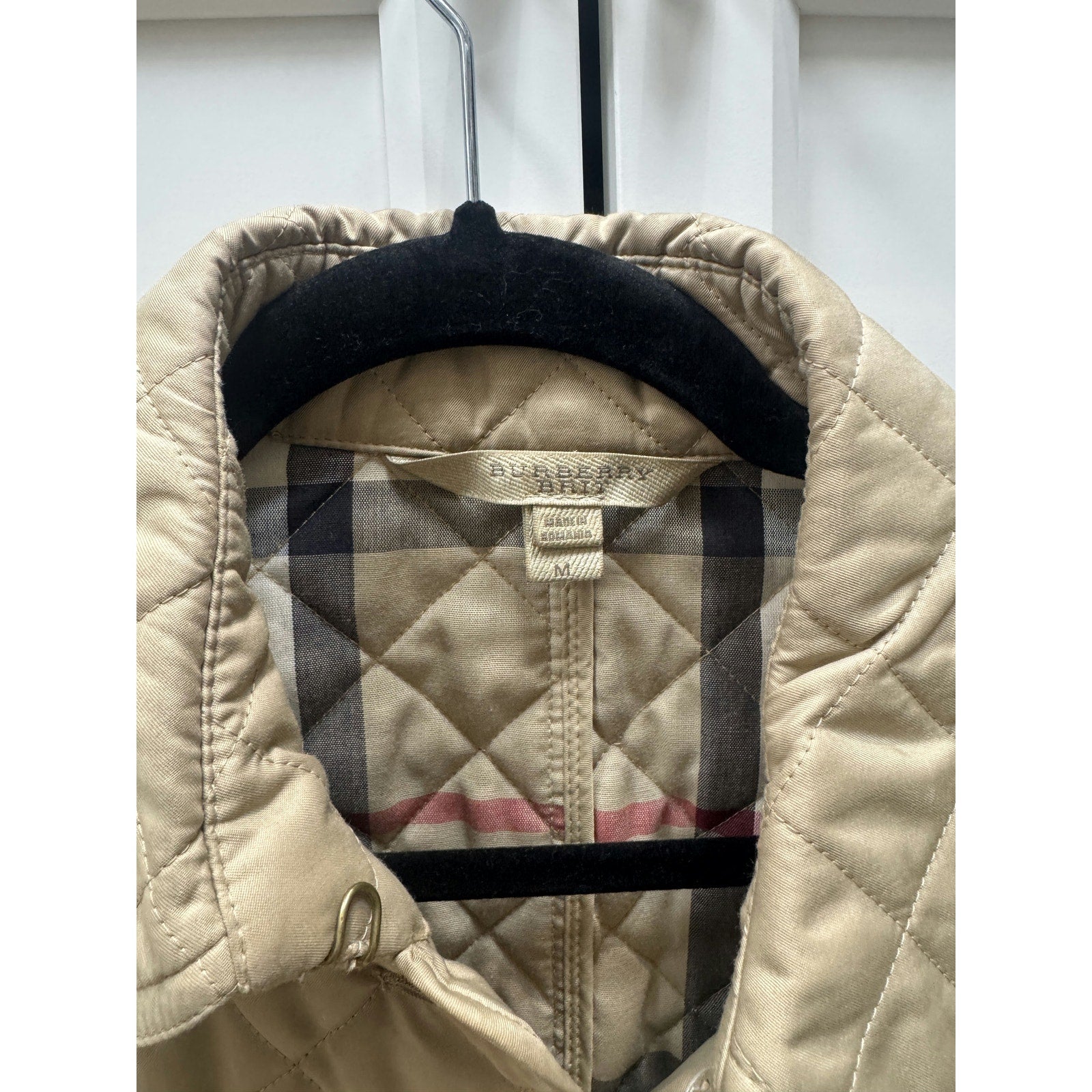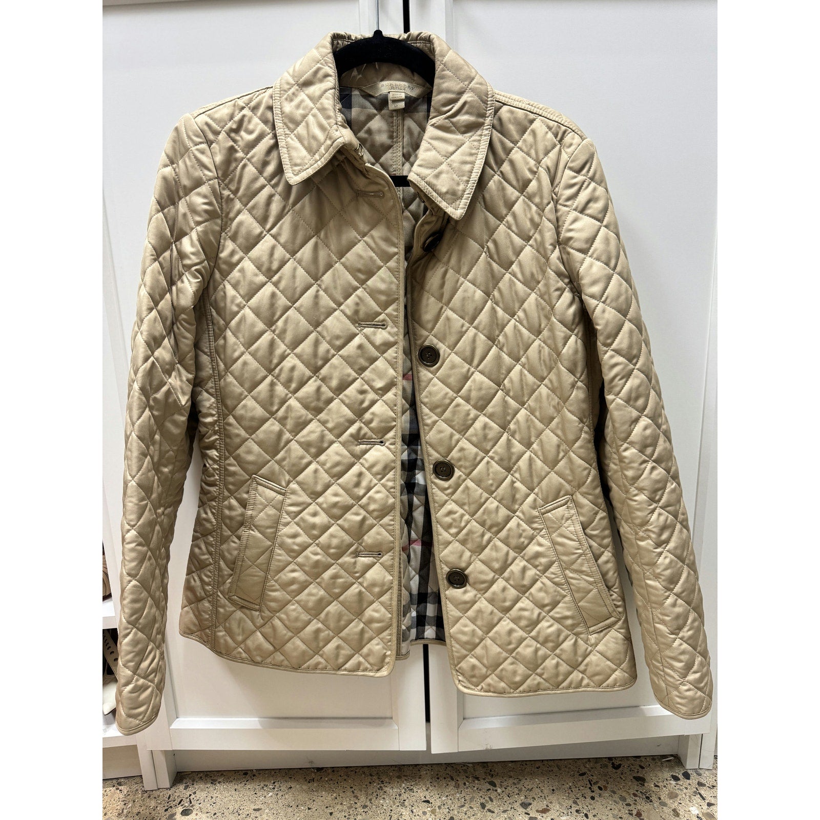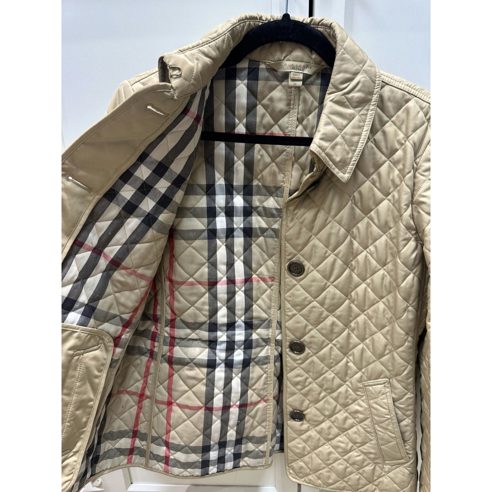 This Burberry Beige Quilted Jacket features a classic design with a signature checked lining, offering both warmth and sophistication. In like-new condition, it's ideal for stylish layering.