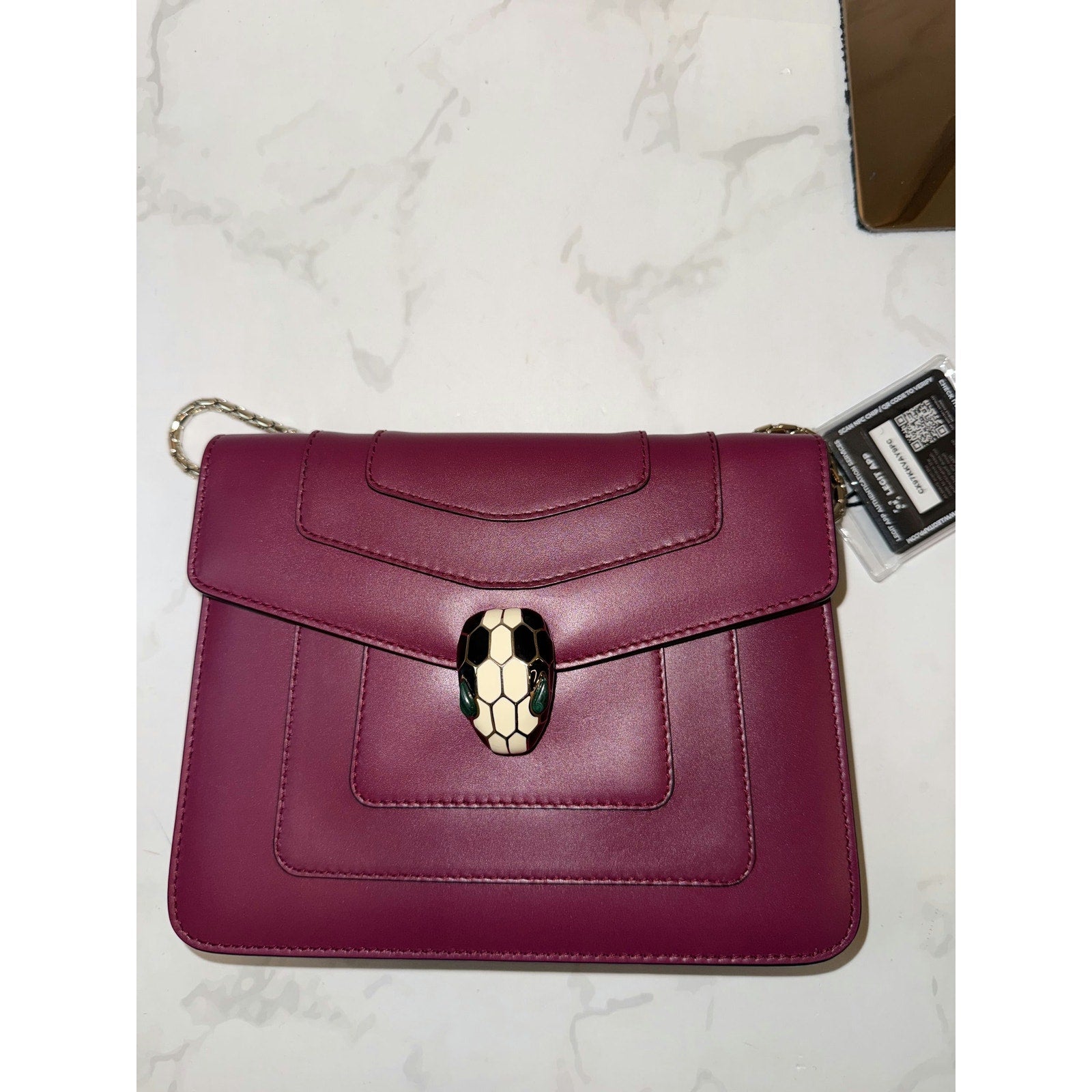 This stunning Bvlgari bag features the iconic Serpenti head closure with luxurious gold-tone hardware. Perfect for adding a pop of color and elegance to any ensemble. Elevate your collection with this exquisite piece!