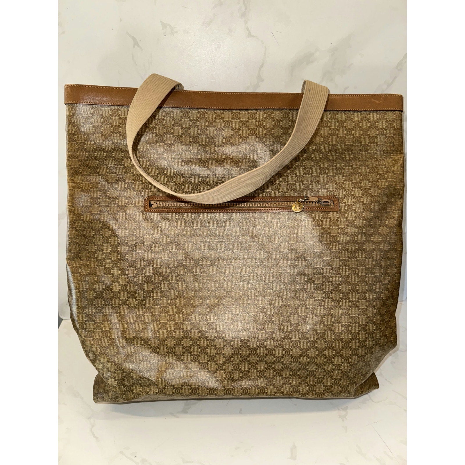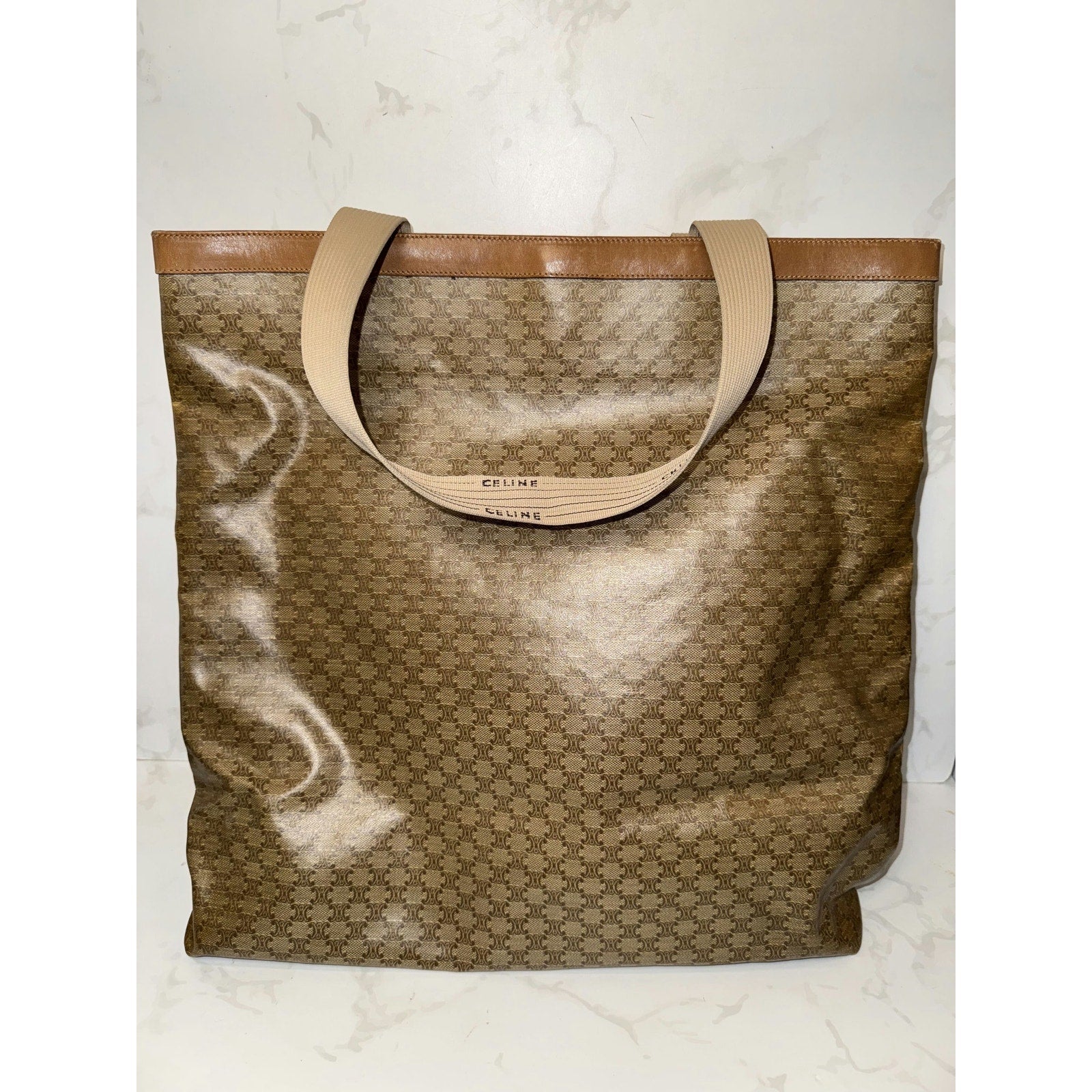 Celine Beige Macadam Coated Canvas Bag