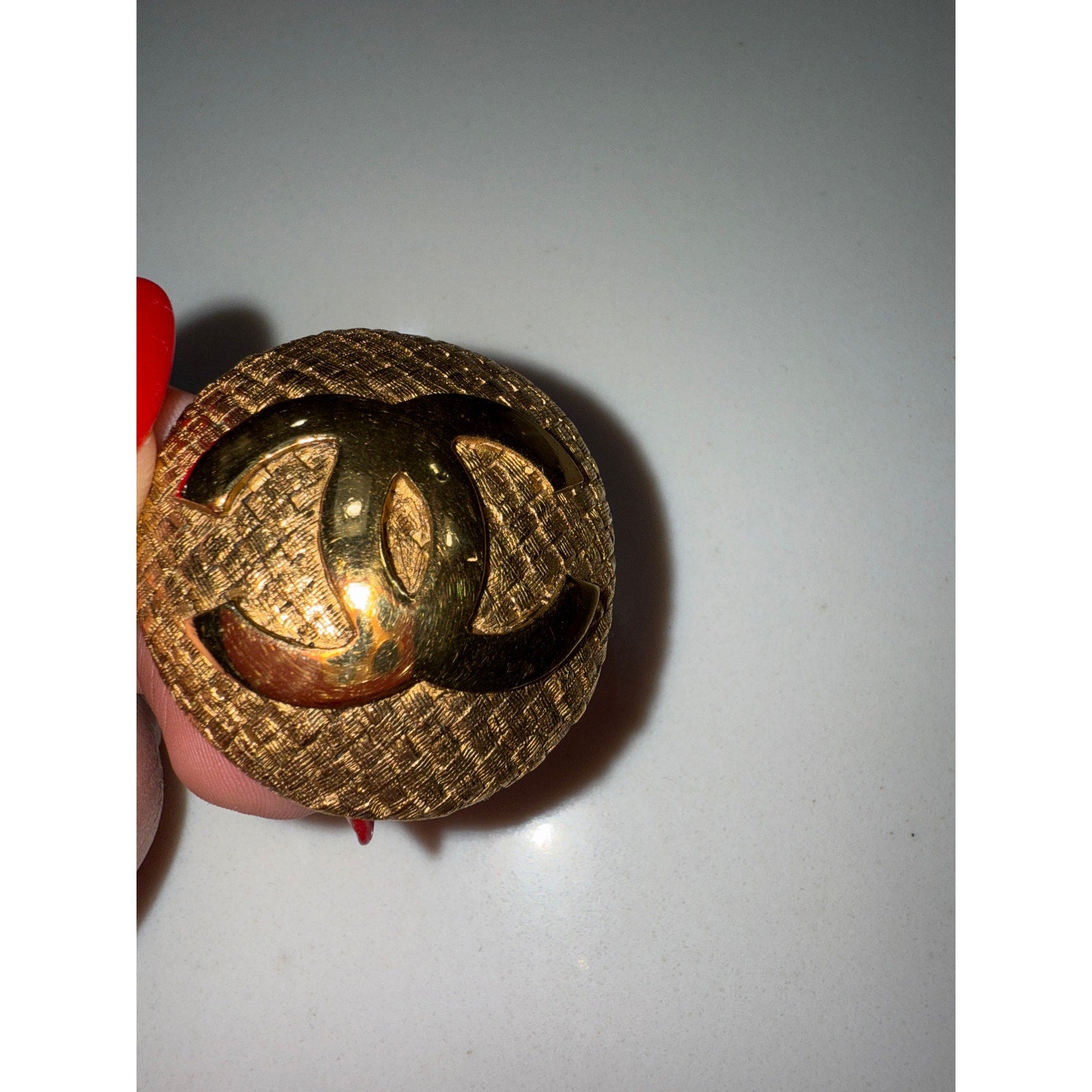 Chanel CC Quilted Round Brooch - Vintage Gold