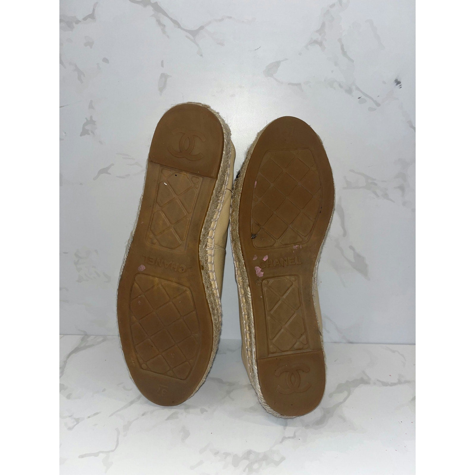 These Chanel espadrilles are a stylish choice for any casual outfit, featuring a classic beige leather upper with jute soles. They are in good condition, showing some wear on the soles. Perfect for a chic and relaxed look, they come with the original box and dustbag. Add these timeless espadrilles to your collection today!