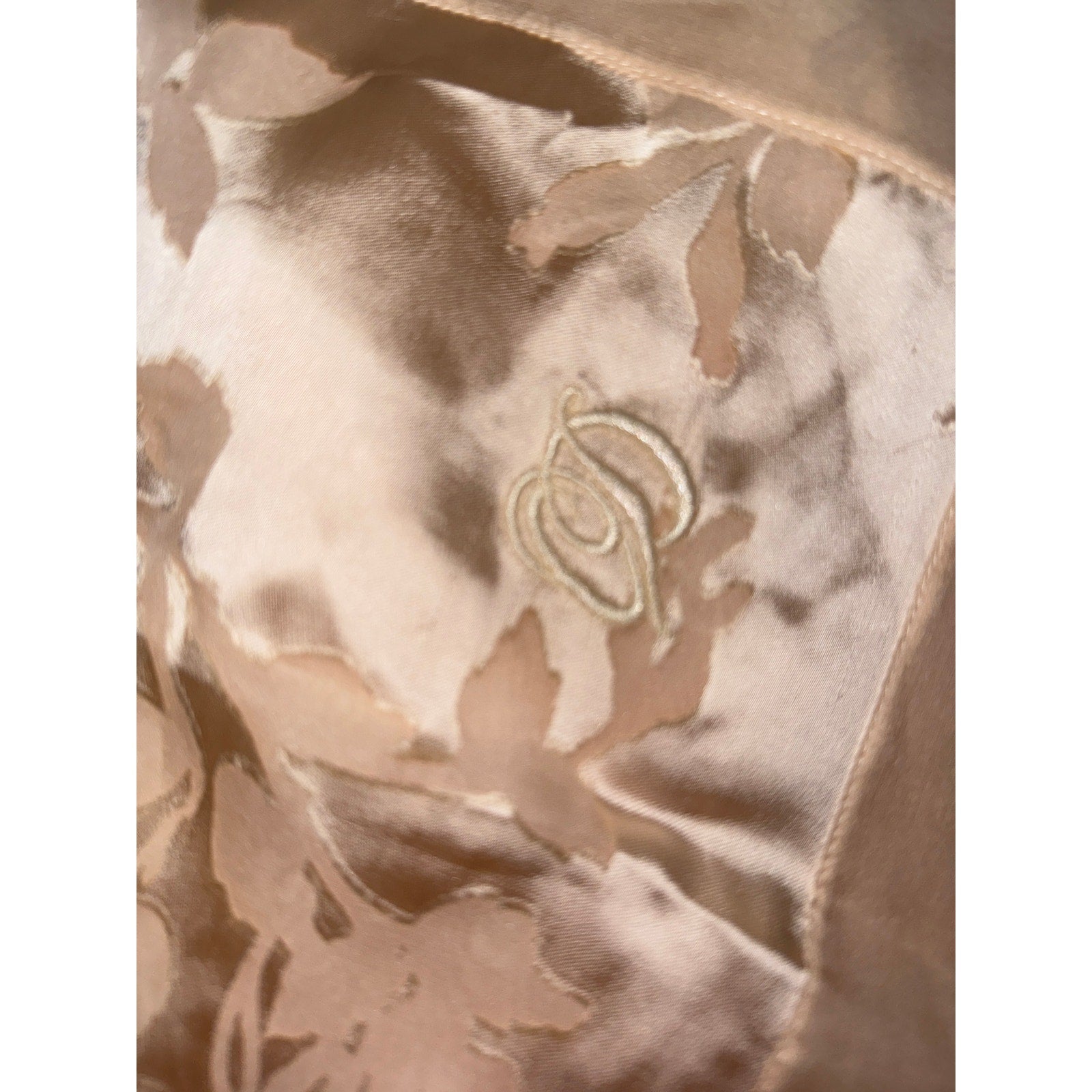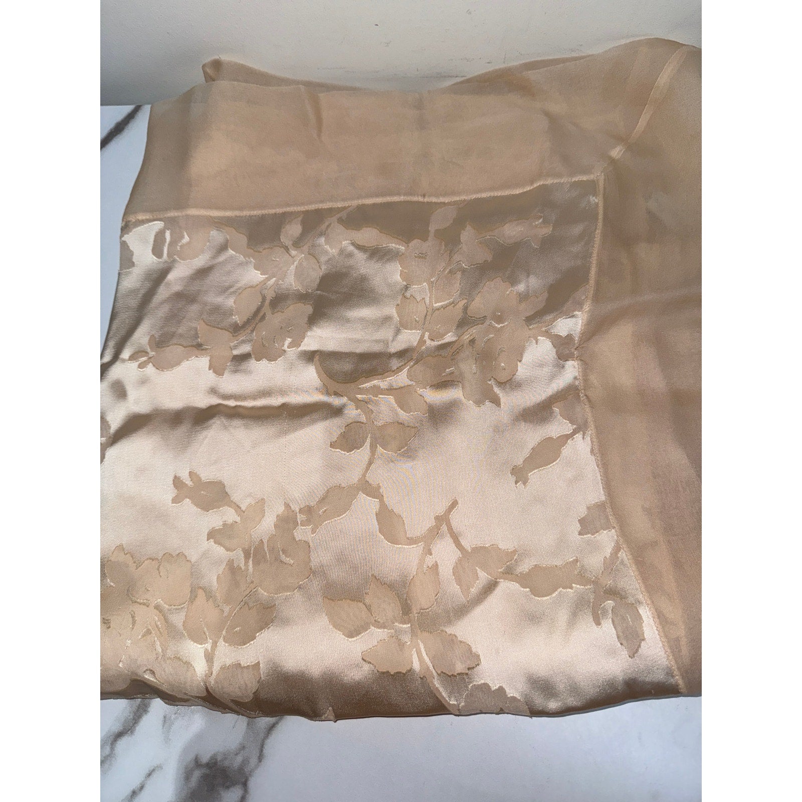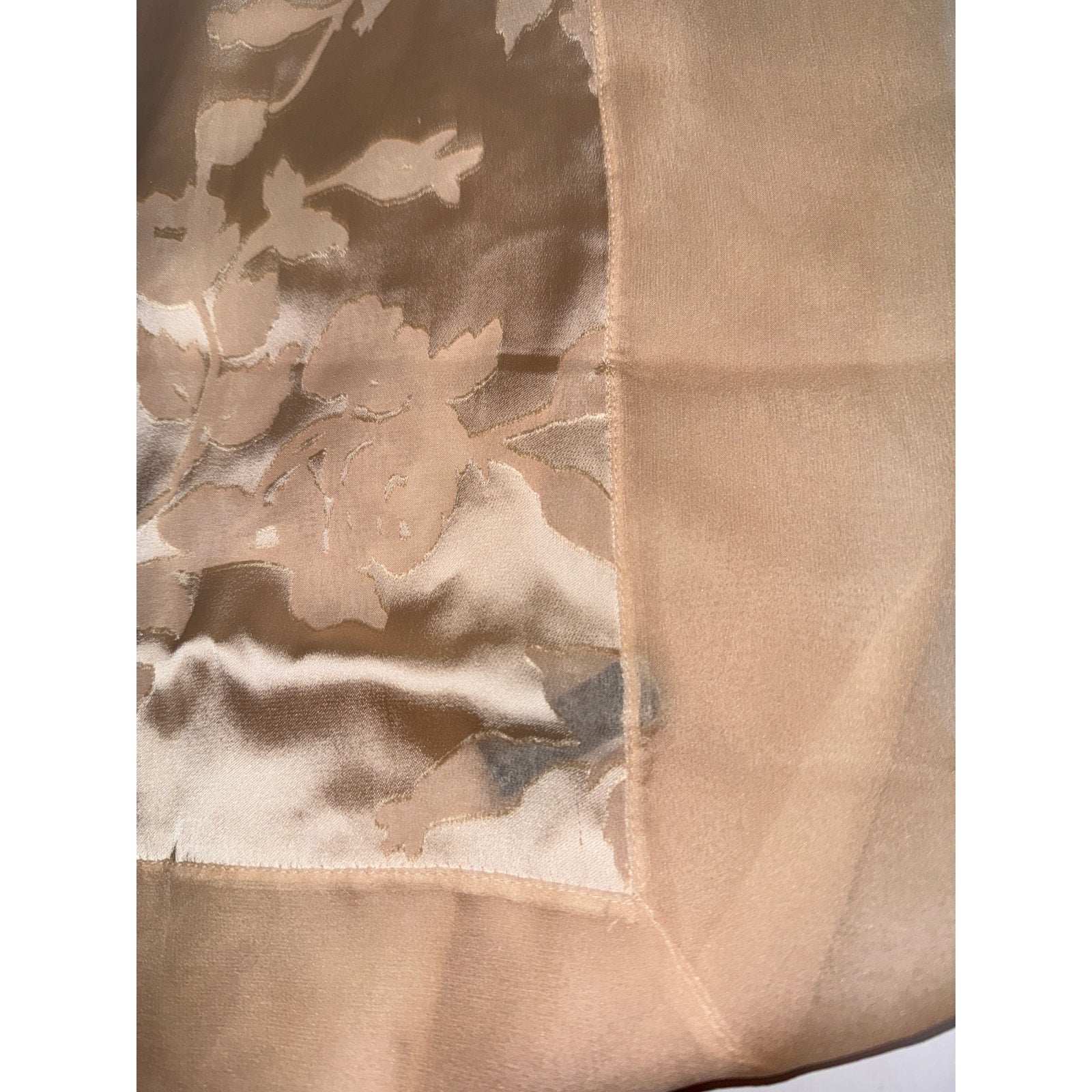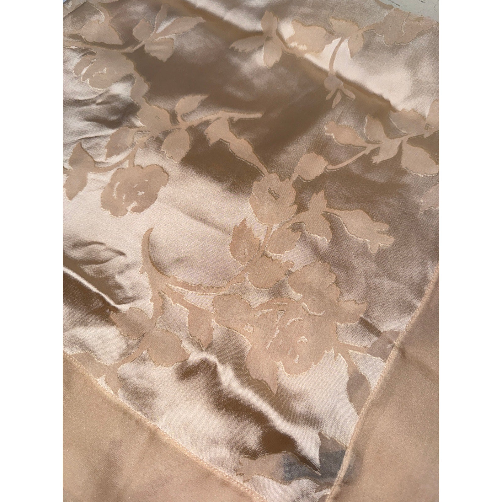This elegant Dior scarf is crafted from fine silk featuring a subtle tone-on-tone floral pattern in a luxurious champagne color. The jacquard weave creates a beautiful dimensional effect, while the monochromatic design offers versatile styling options. The piece is finished with hand-rolled edges and bears the classic Christian Dior Paris signature label.