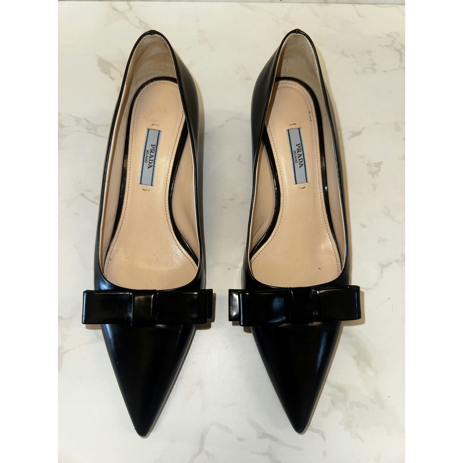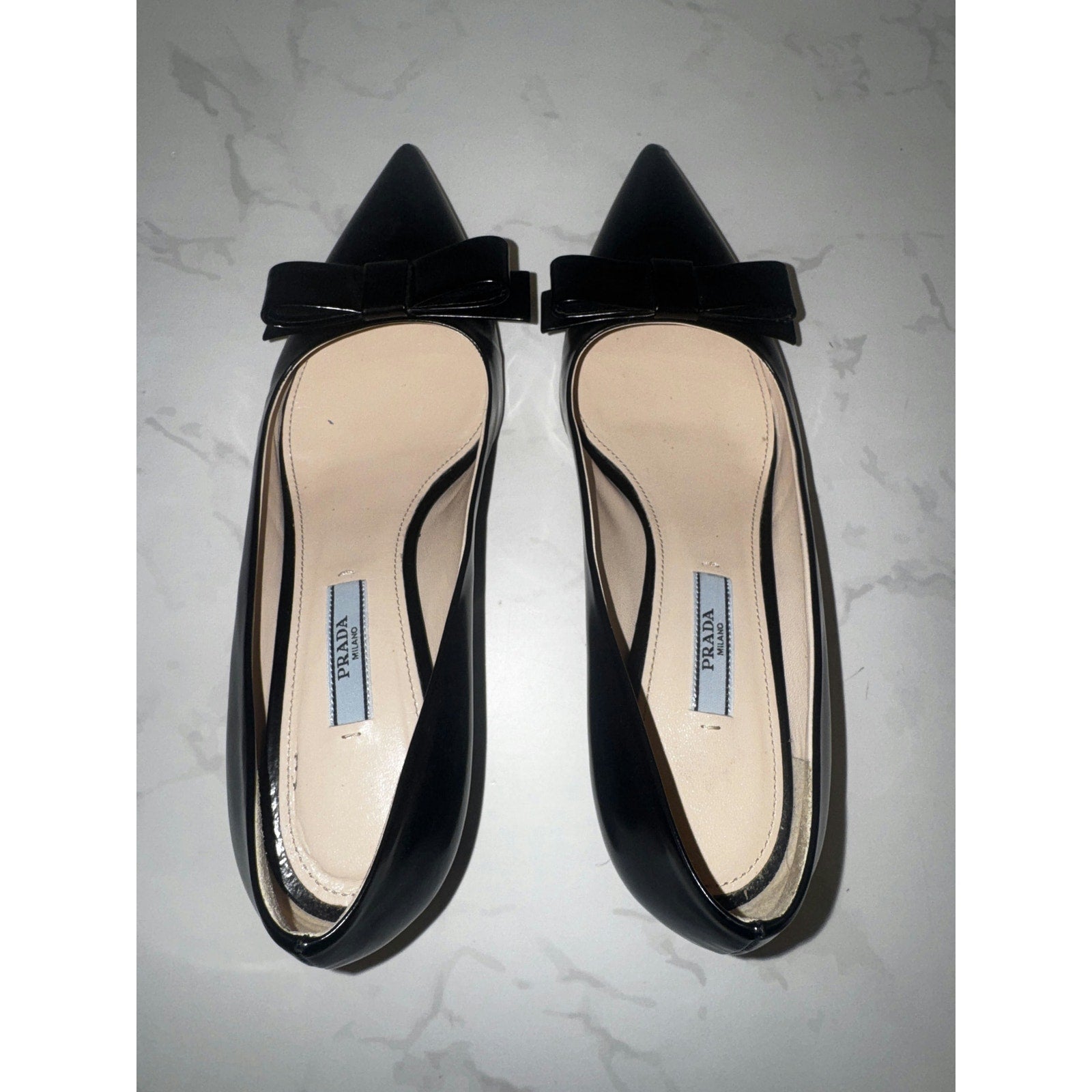 Prada Black Patent Leather Bow Pointed Toe Pumps