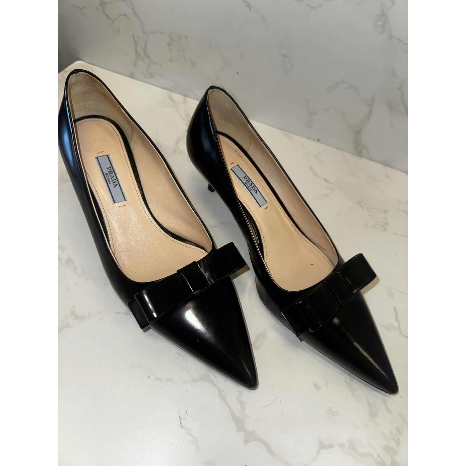 These Prada Black Patent Leather Pumps feature a chic bow detail and pointed toe, perfect for elevating any outfit. In good condition, they come with a box, dustbag, and extras. A stylish choice for any occasion.