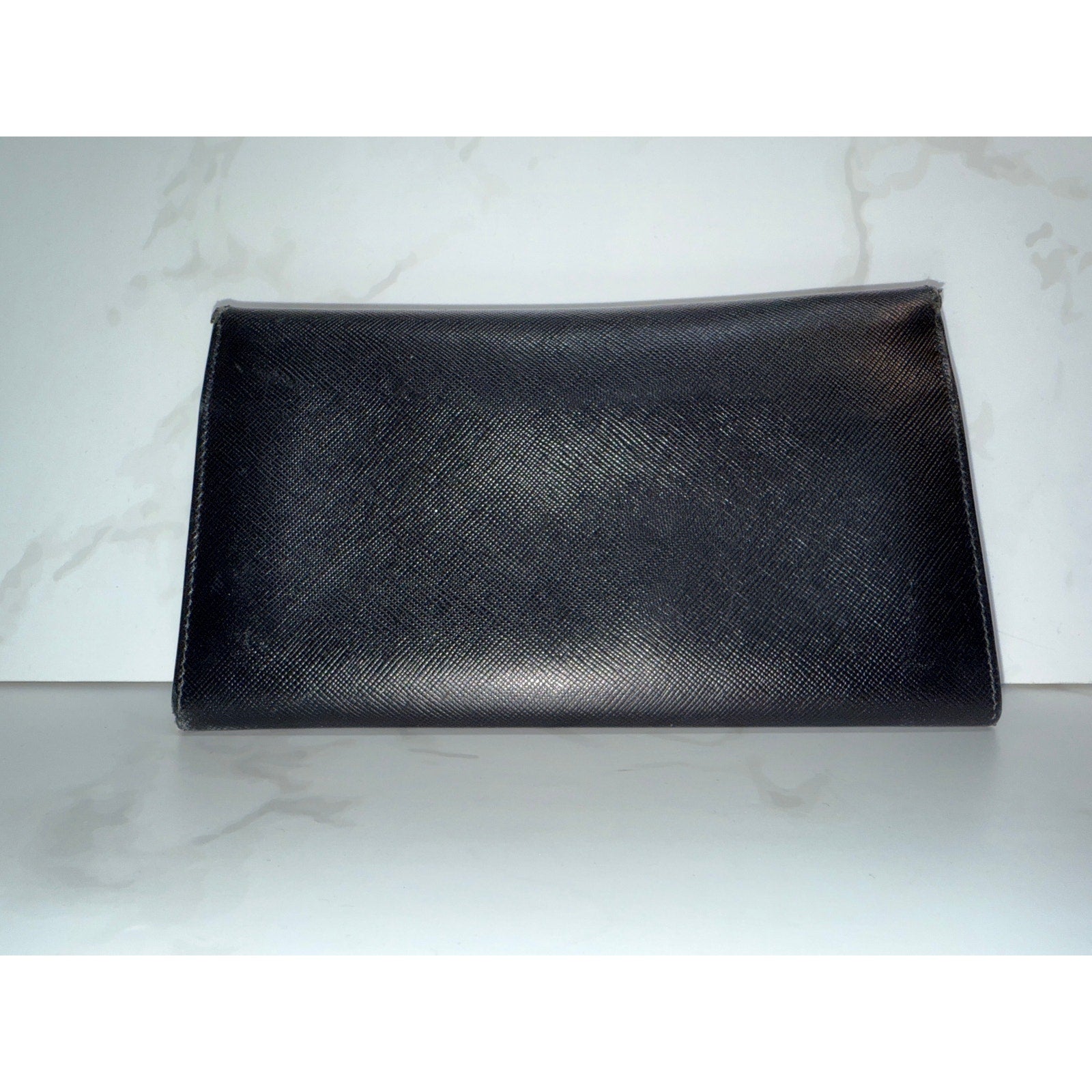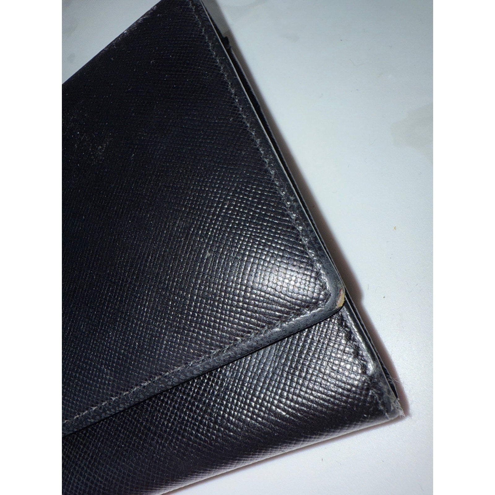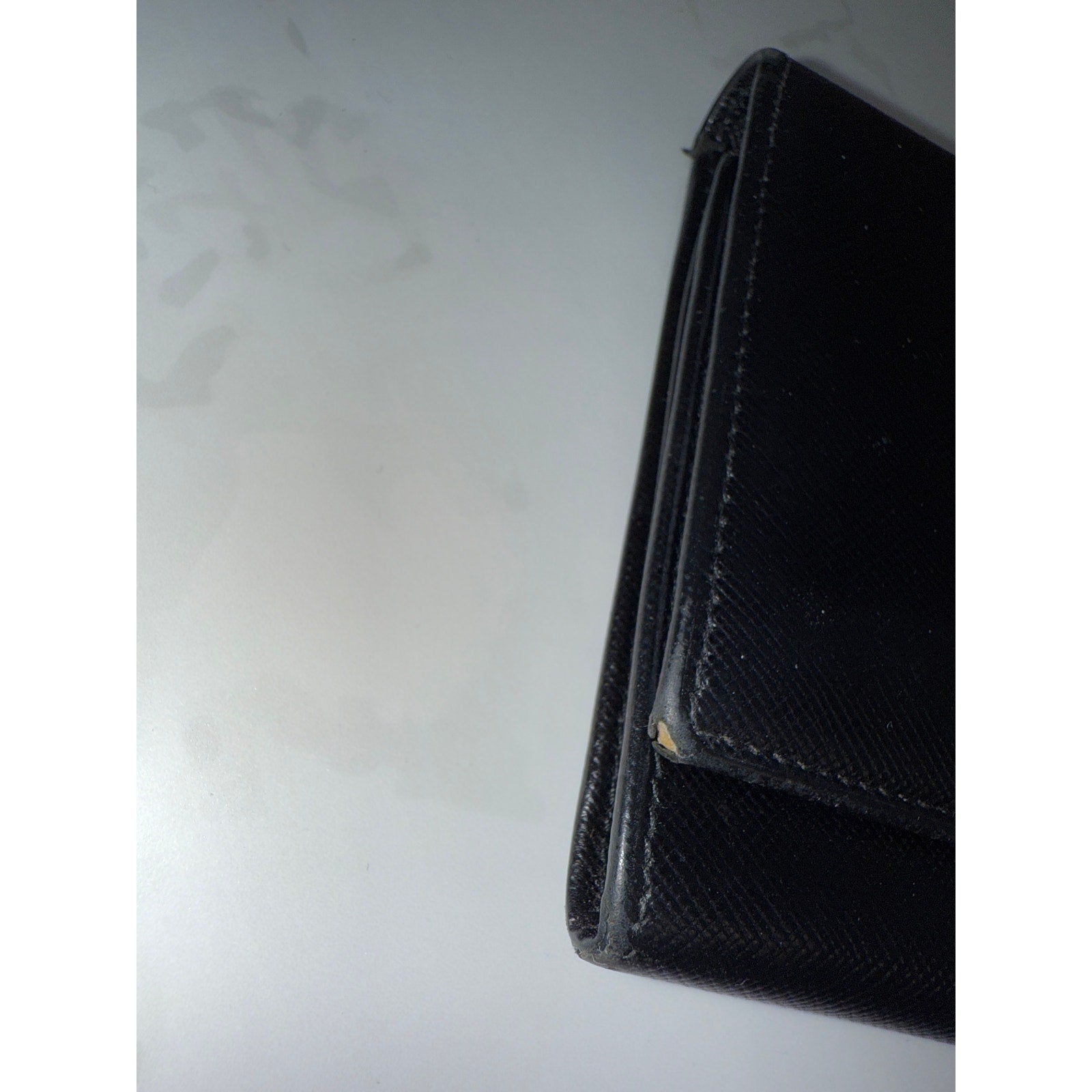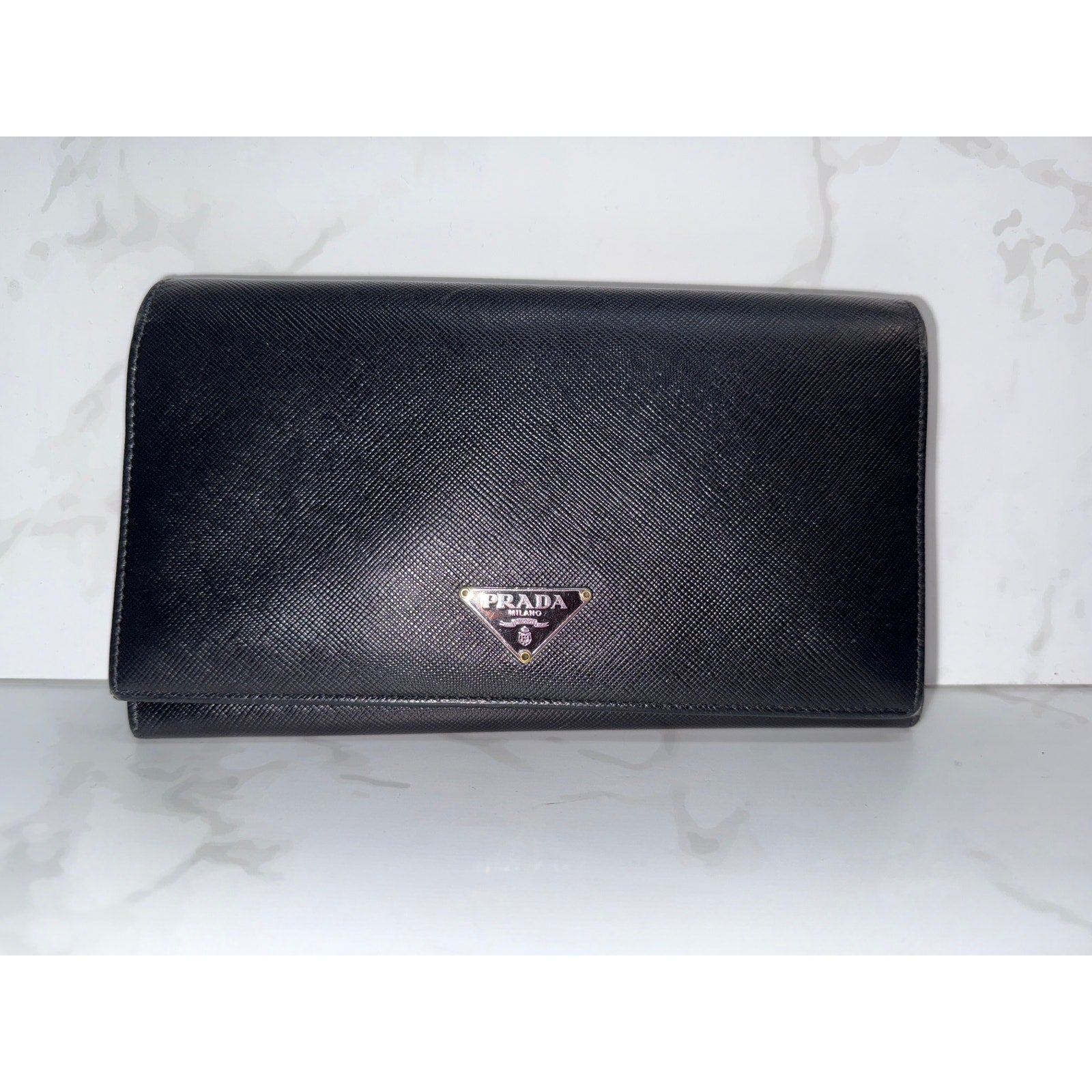 This classic Prada wallet showcases the brand's signature Saffiano leather in timeless black, featuring the iconic triangle logo plaque in silver-tone. The continental design offers ample space with multiple card slots, bill compartments, and a zippered coin pocket. The durable Saffiano leather ensures long-lasting wear while maintaining its sophisticated appearance.