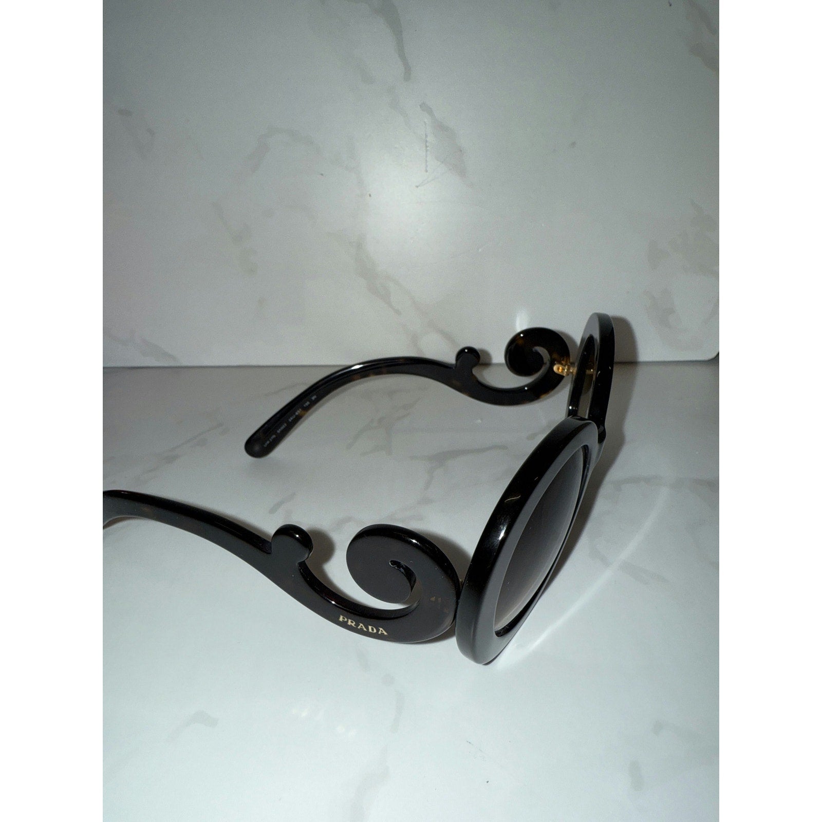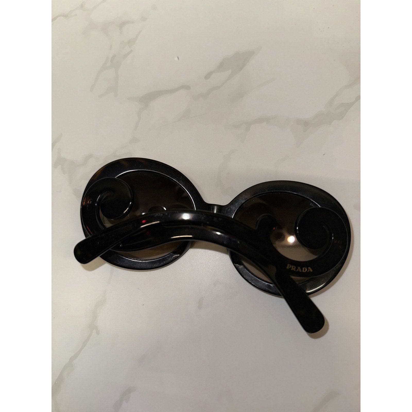 These Prada sunglasses feature a distinctive black frame with the iconic swirl temple design, combining luxury and fashion-forward style. The sunglasses are in excellent condition, providing both UV protection and a bold statement look. They come with a protective case, perfect for maintaining their pristine condition.
