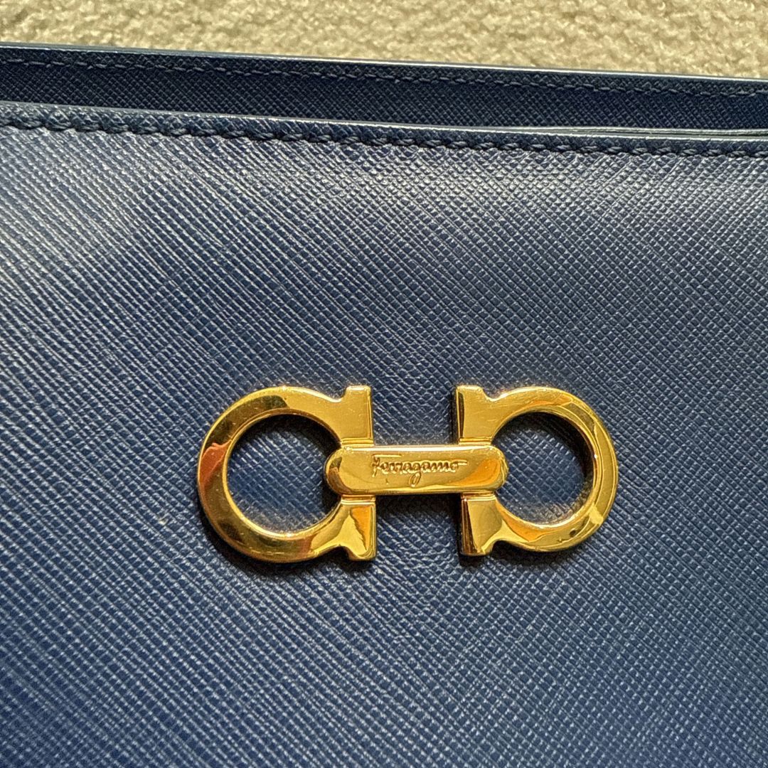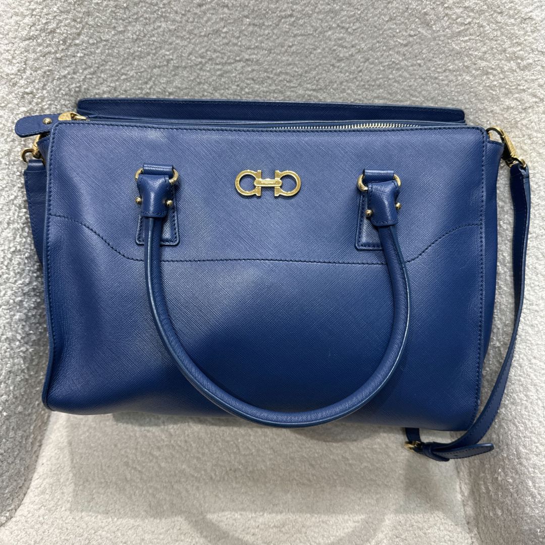 Salvatore Ferragamo Ferragamo Blue Saffiano Gancini Beky Satchel