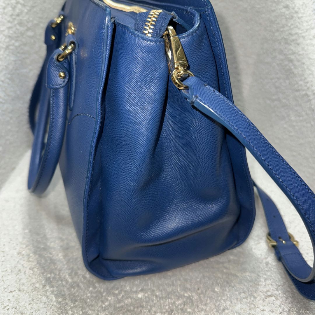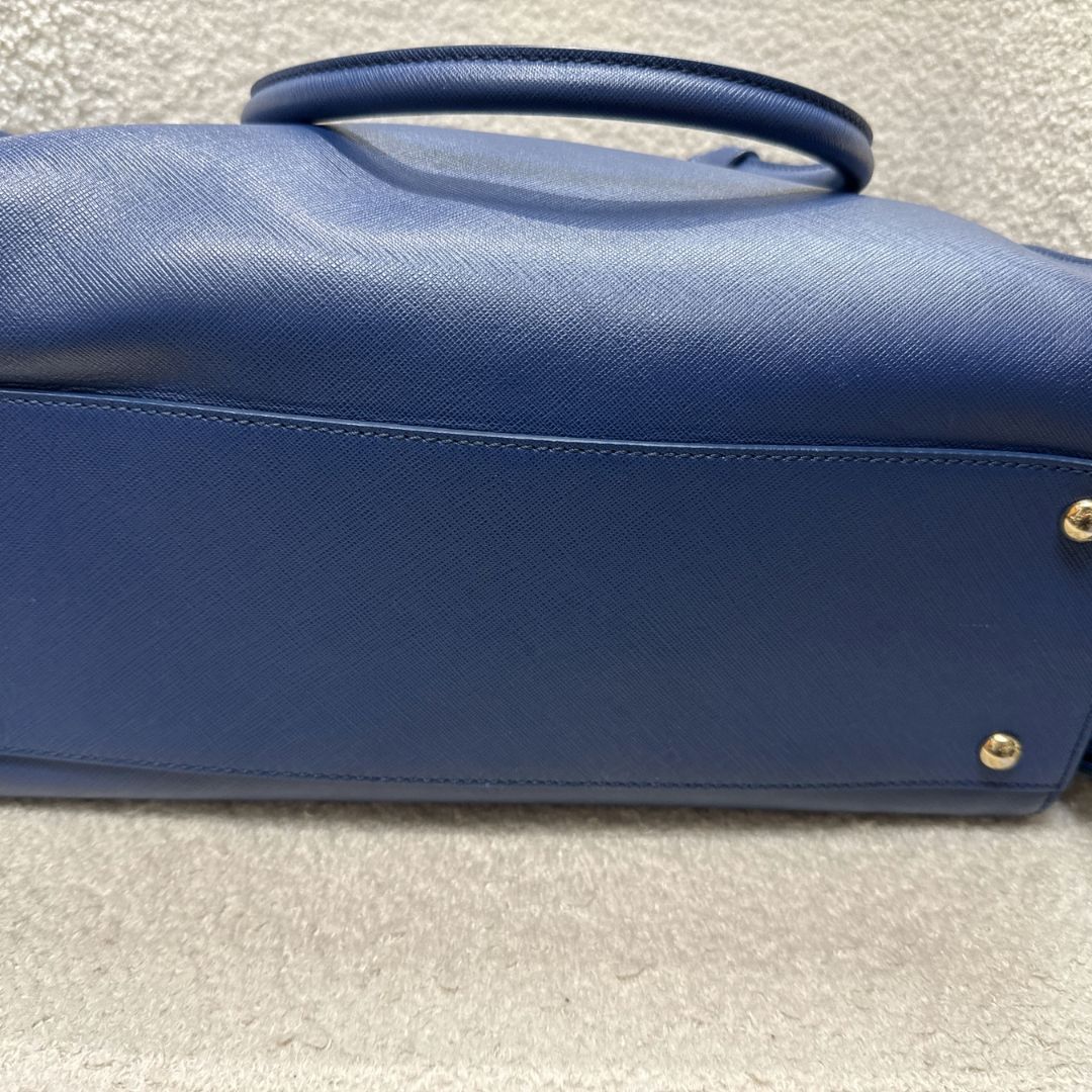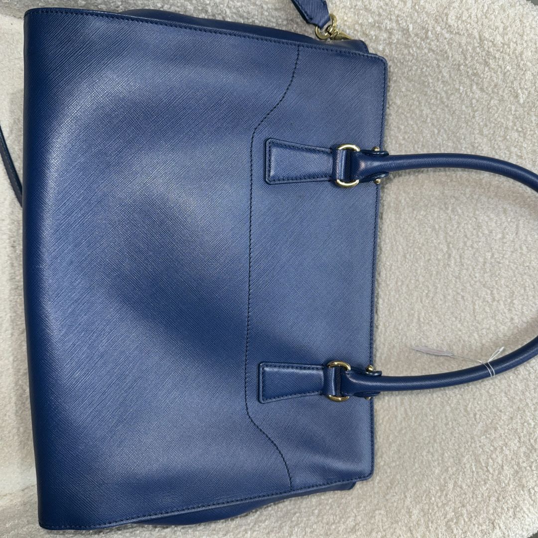 The rich blue color adds a pop of sophistication, while the sleek design provides versatility for both casual and formal occasions. With ample interior space and sturdy handles, this satchel offers both style and practicality.