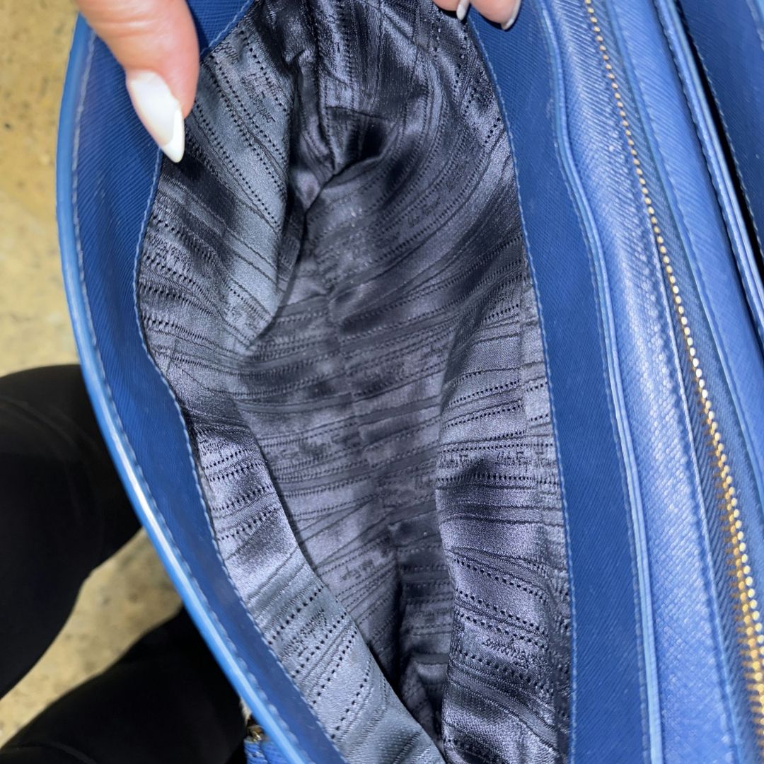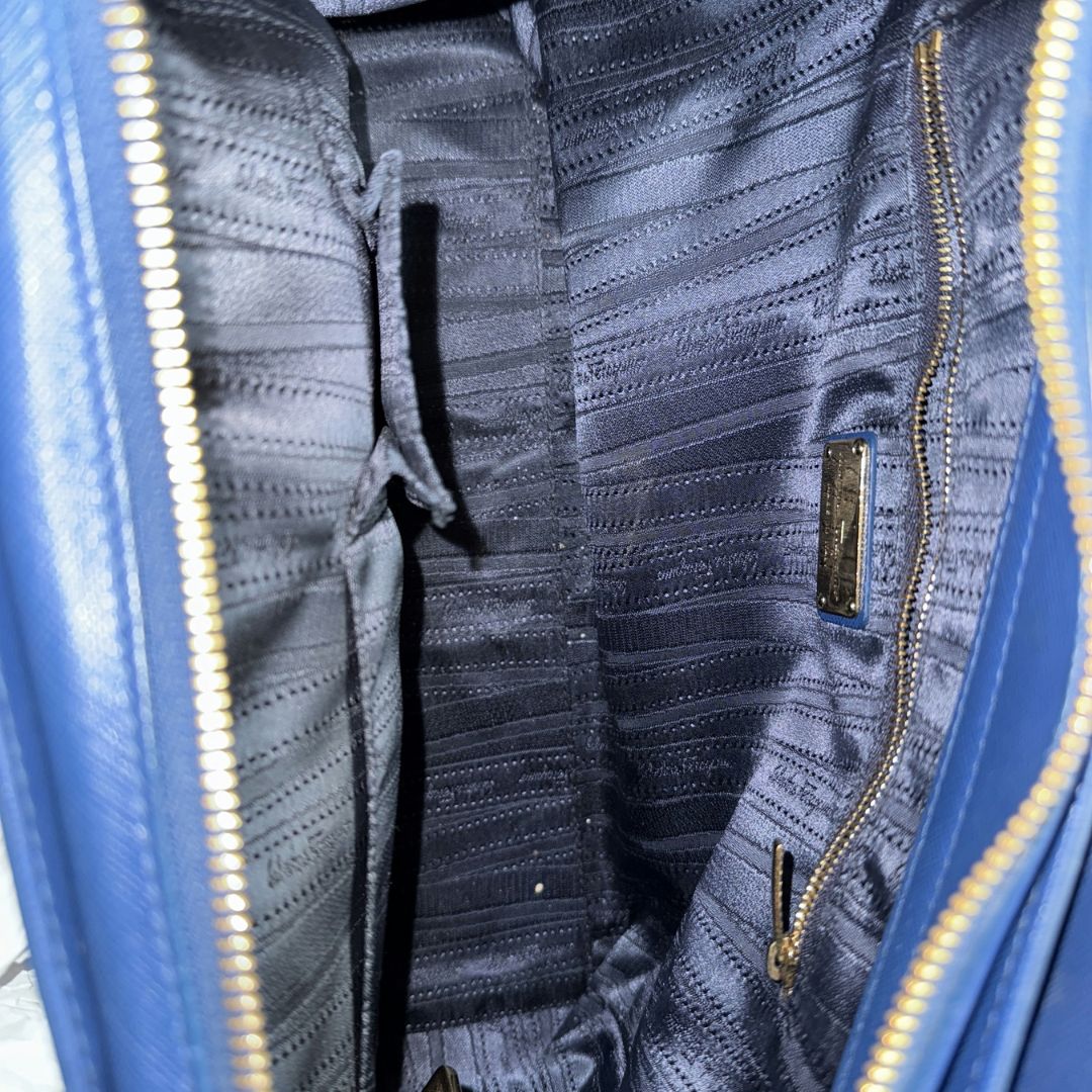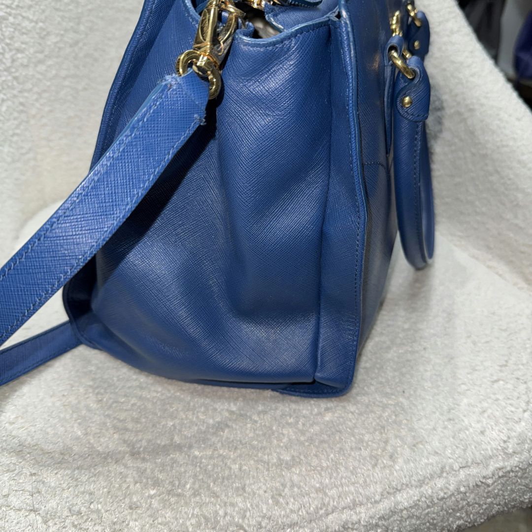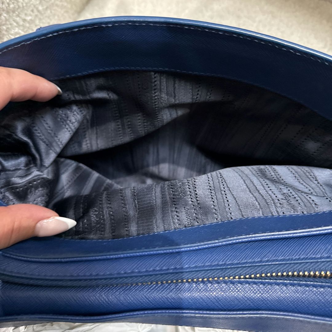The rich blue color adds a pop of sophistication, while the sleek design provides versatility for both casual and formal occasions. With ample interior space and sturdy handles, this satchel offers both style and practicality.