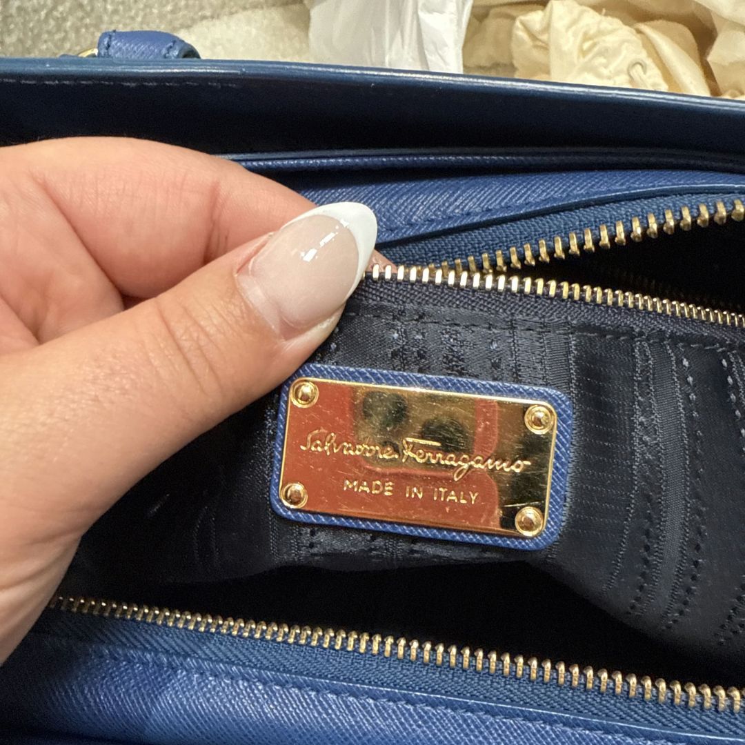 Salvatore Ferragamo Blue Saffiano Gancini Beky Satchel